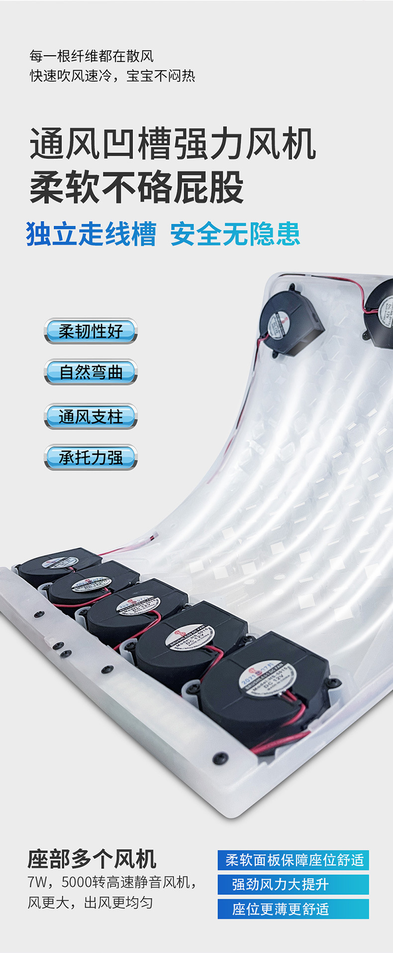 搭载24台风机的风扇坐垫,灵活适应12V/24V电压环境,