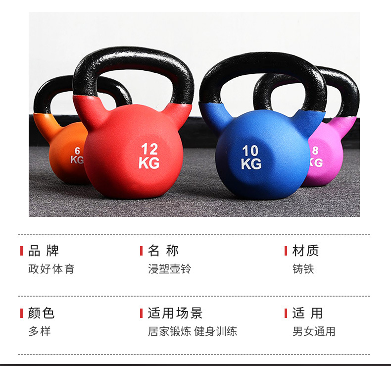 Ketel celup plastik besi cor padat pot warna dumbbell rumah gym portabel pot dumbbell celup plastik bel ketel