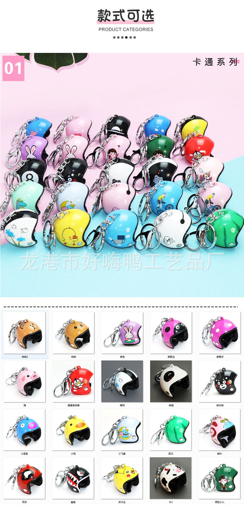 Pabrik gantungan kunci helm rusak bebek bambu capung helm daun kuning kartun motor topi perhiasan liontin kualitas tinggi