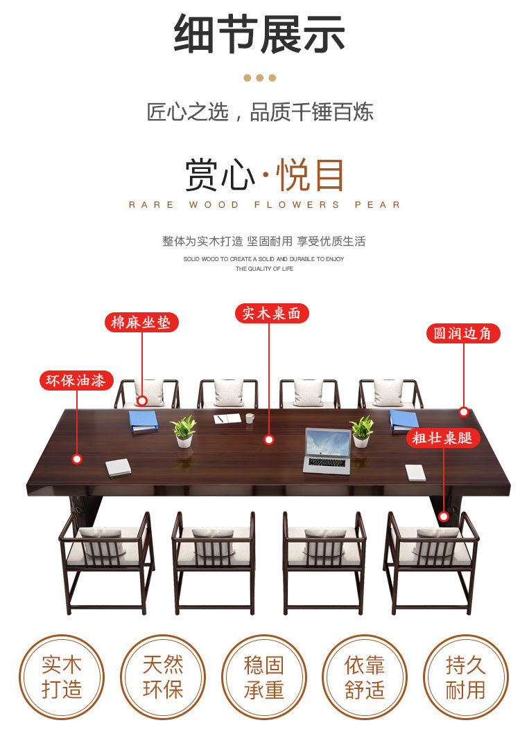 Meja konferensi kayu solid minimalis Modern, Meja negosiasi belajar panjang dan meja baca kantor meja negosiasi kerja panjang