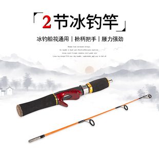跨境52cm枪柄冰钓竿两节玻璃钢钓鱼竿超短莲花接口冬钓竿现货批发