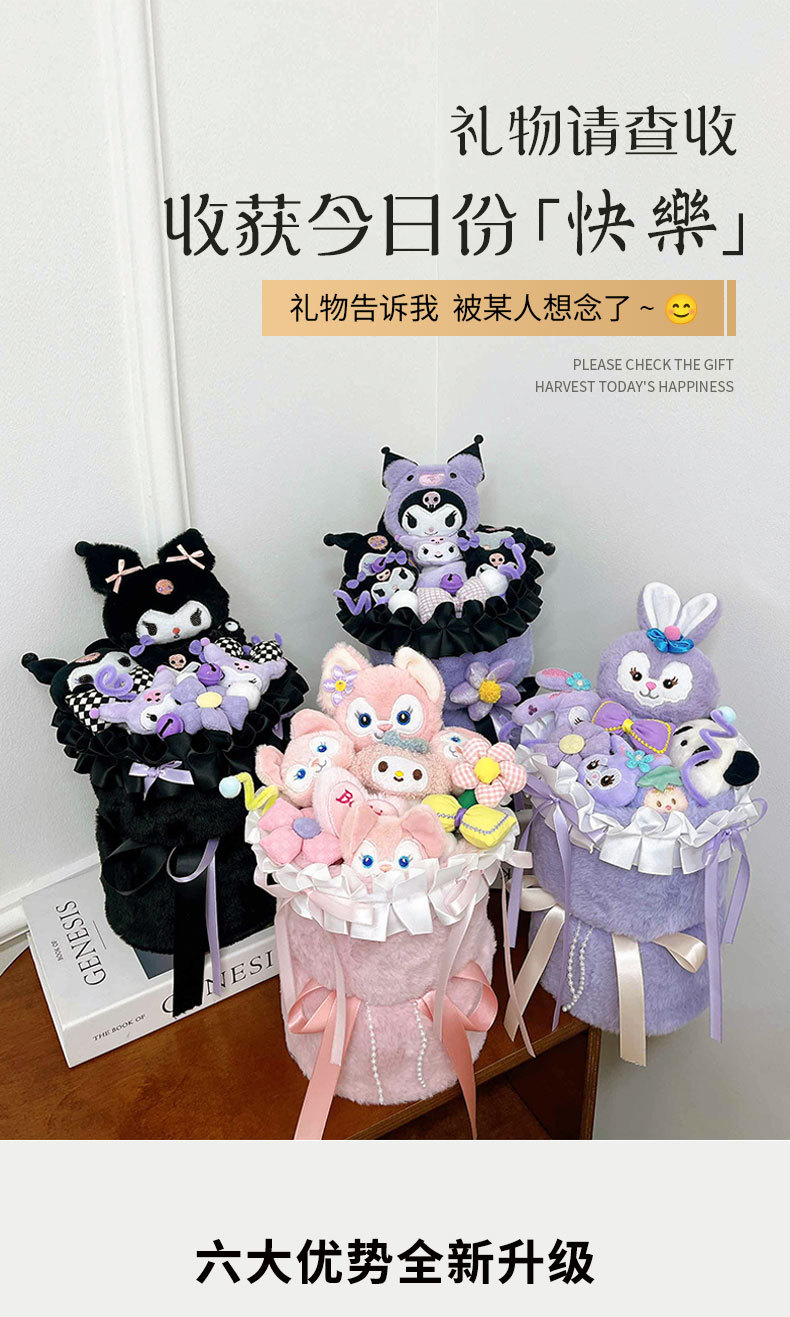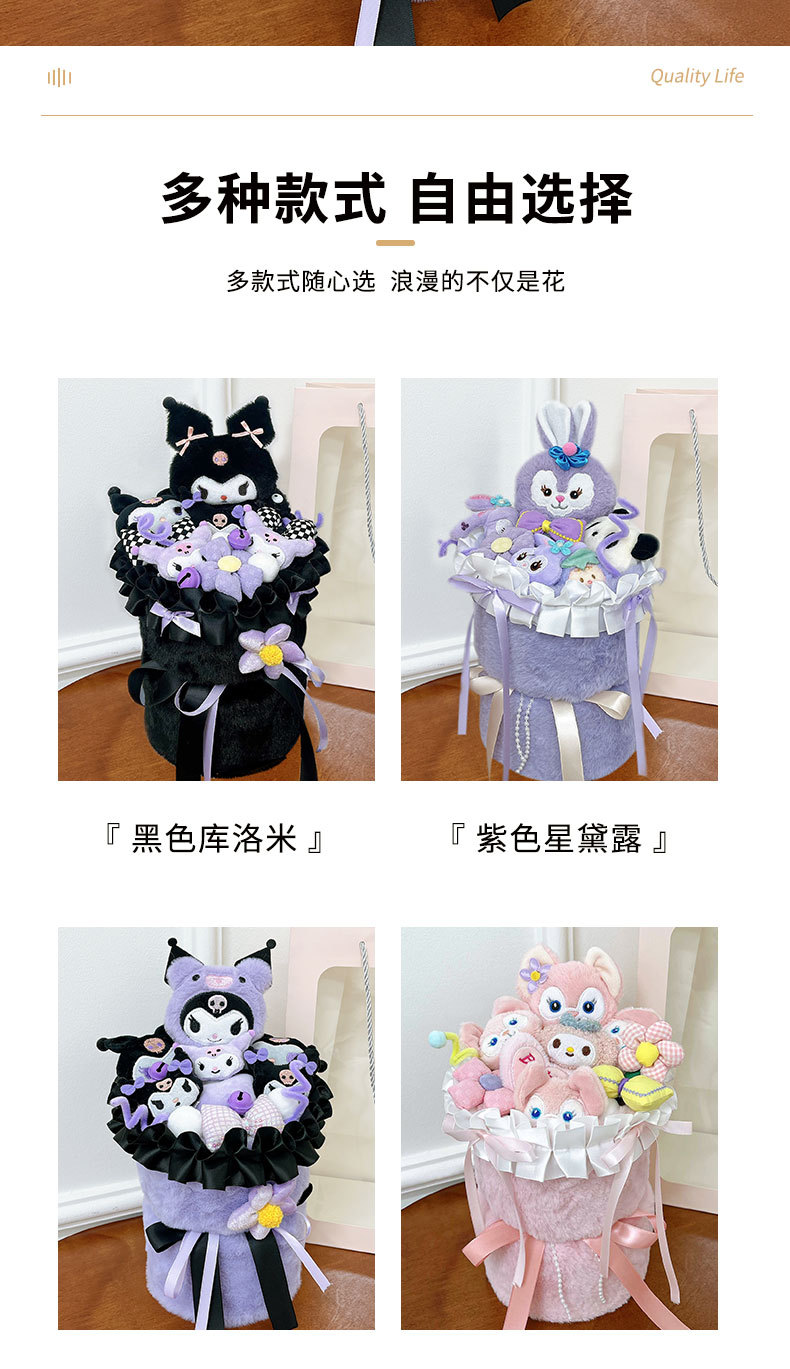 Hadiah Natal untuk sahabat terbaik atau pacar, buket boneka kartun Linna Belle, StellaLou, Kuromi