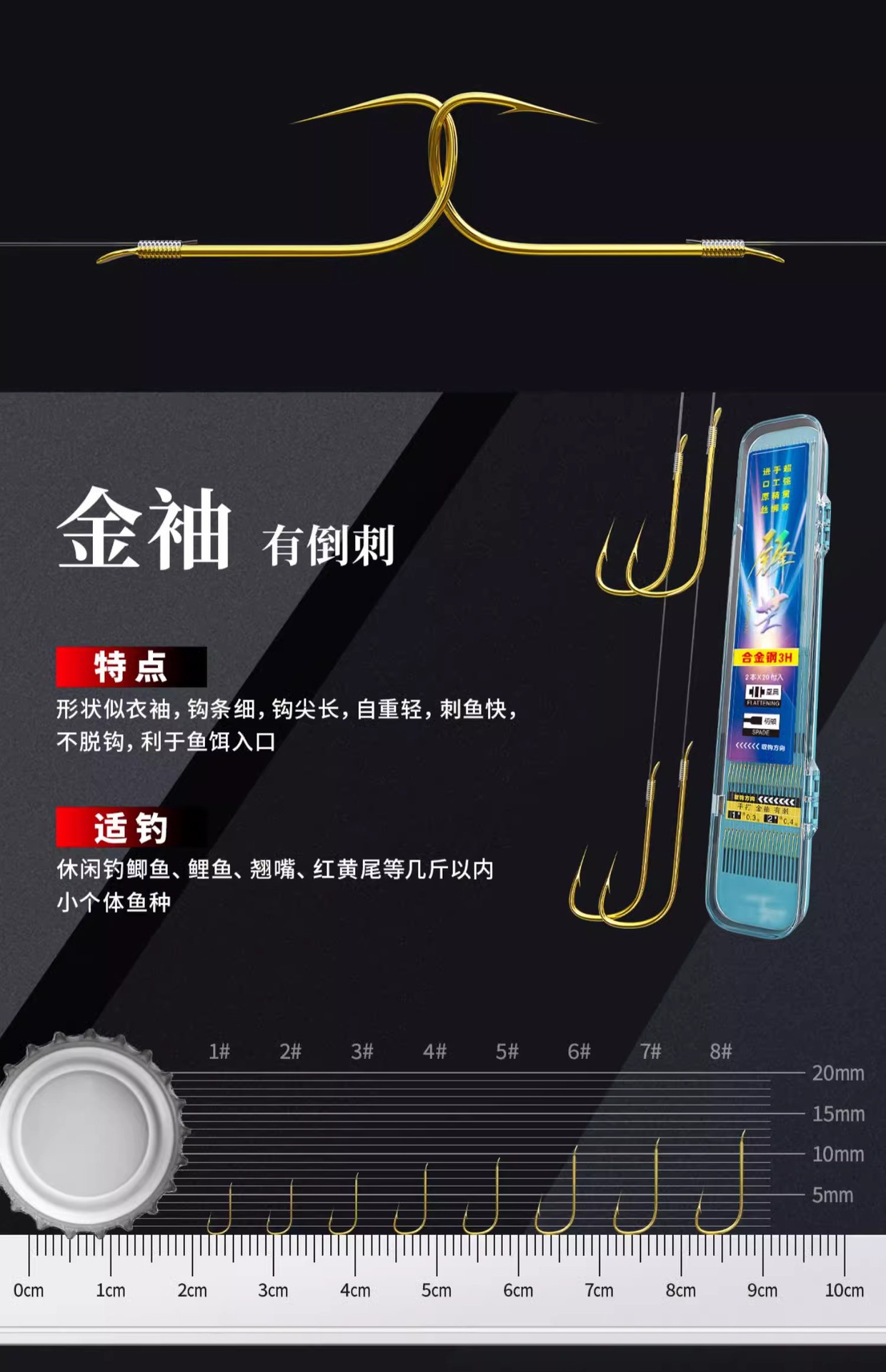 Benang kait ganda lengan emas mata kail selesai anti-berliku mata kail asli barang terikat sesuai kail pancing perlengkapan memancing grosir