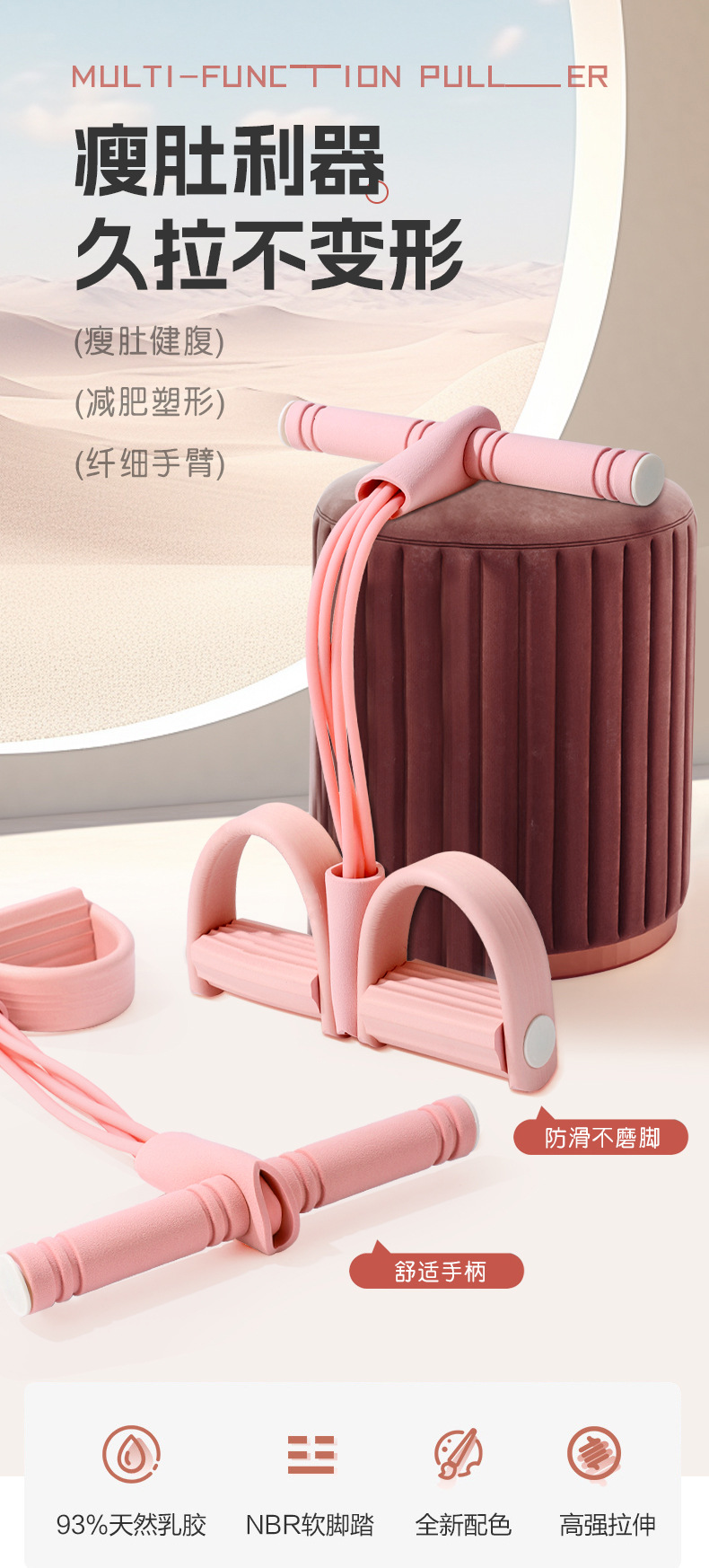 Pedal tekanan, perangkat multifungsi Empat tabung pedal pegangan perangkat sit-up yoga tambahan tekanan tali perut bahan pelatih
