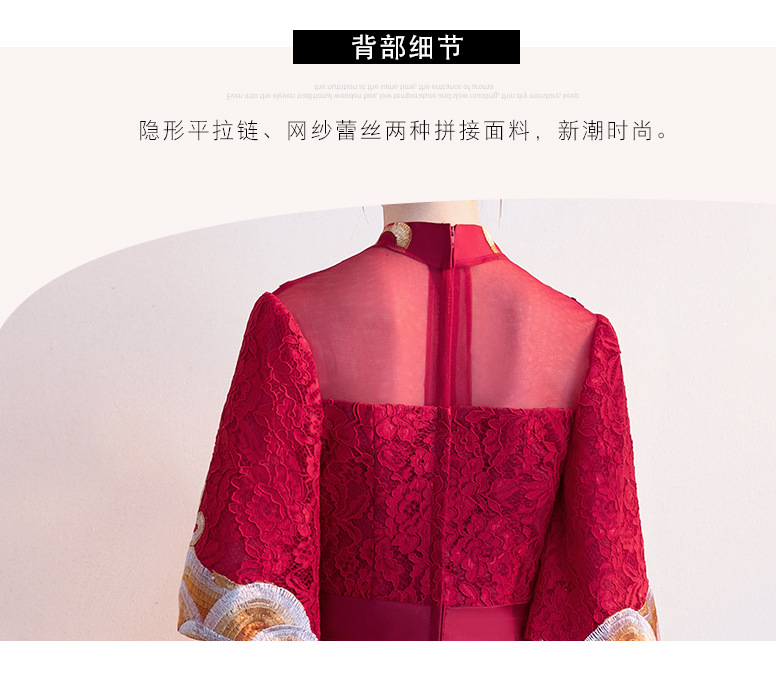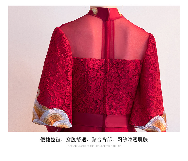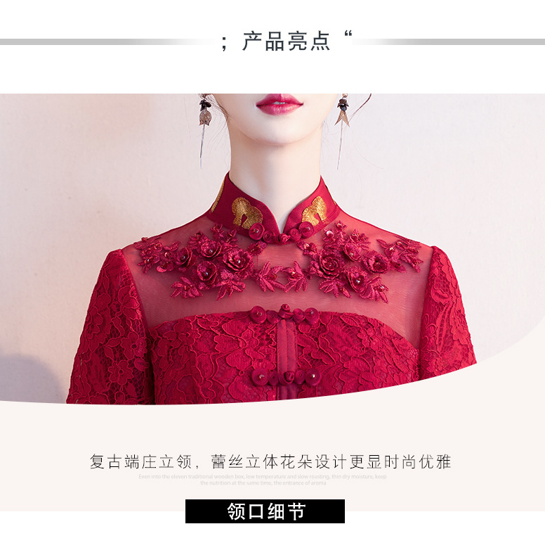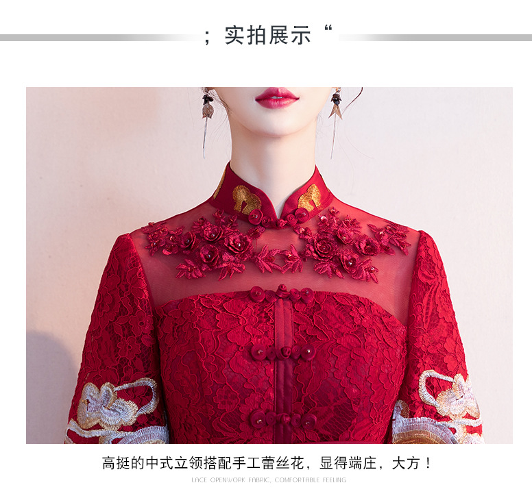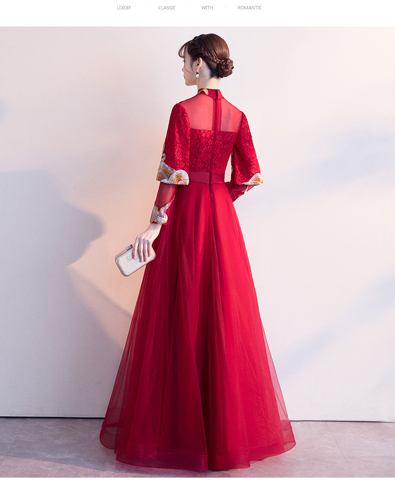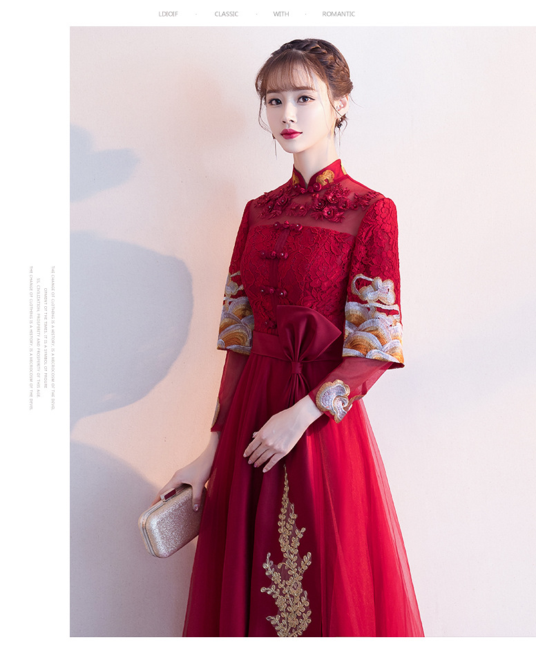 Pakaian Bersulang Pengantin Panjang 2025 Pernikahan Burgundy Gaun Perjamuan Cheongsam Gaya Cina Lengan Panjang Tiongkok Wanita Musim Panas