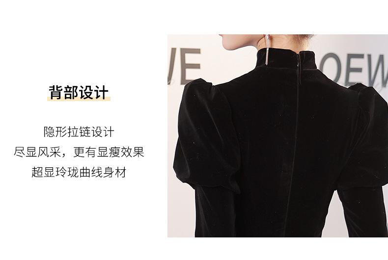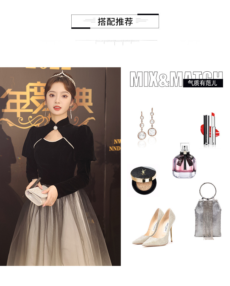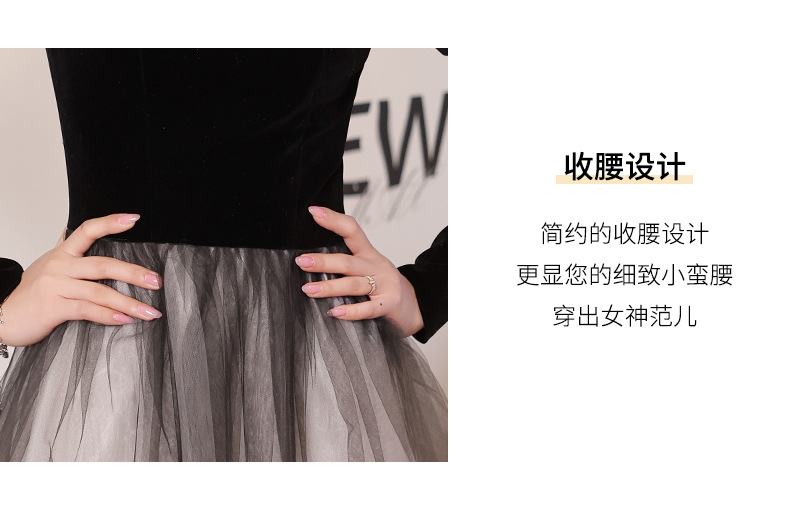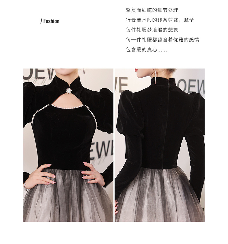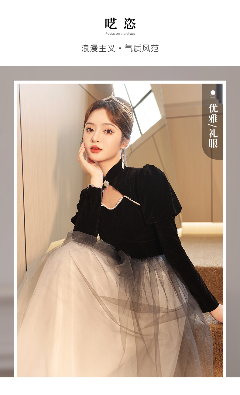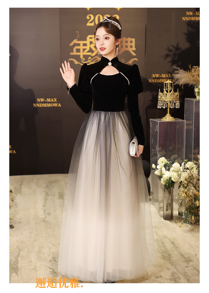 Gaun malam hitam lengan panjang wanita, Gaun malam hitam elegan seni ujian host pertemuan tahunan nyaman 2024