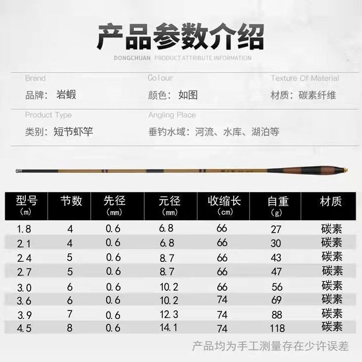 Rock shrimp joran pancing ultra ringan ultrfine halus 37 tongkat tangan bagian pendek dapat disesuaikan joran udang karbon tongkat pancing ikan mas bambu kuning 1.8-4.5 m