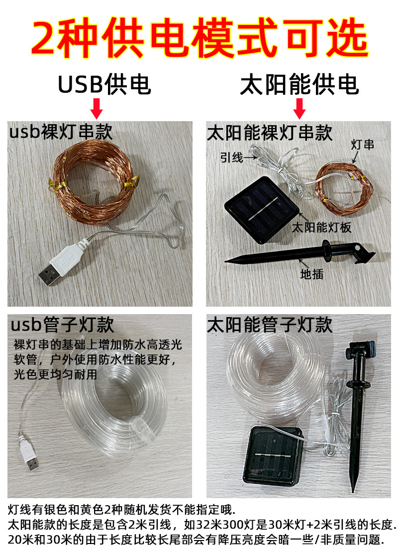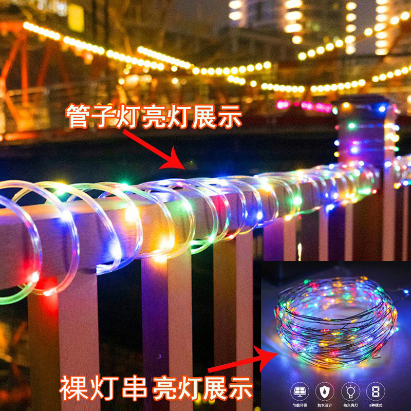 Lampu tenaga surya baru dengan halaman tahan air luar ruangan lampu suasana super terang LED luar ruangan lentera garis tabung berwarna tembaga