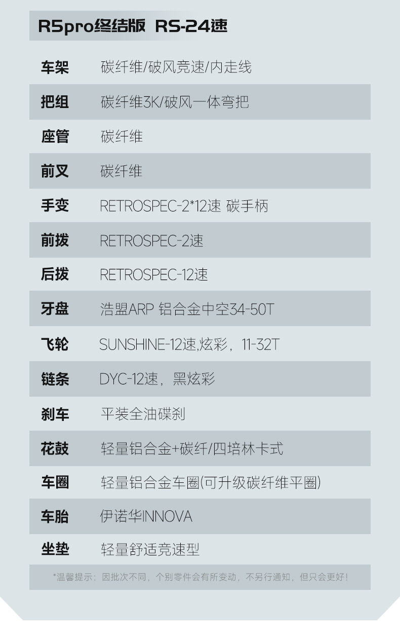 【车架】:R5pro(碟刹桶轴12*142) 高模量碳纤维/破风竞速/内走线