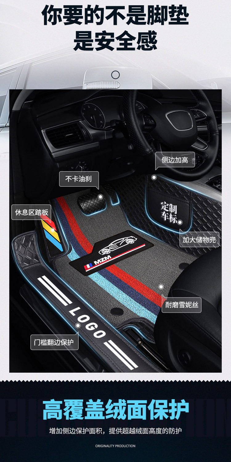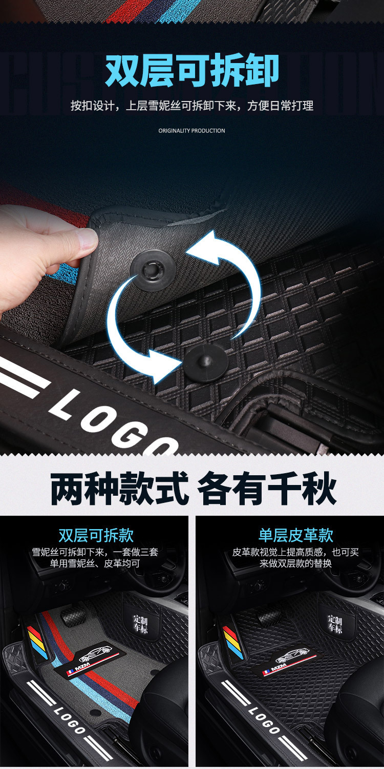 Grosir mobil dikelilingi sepenuhnya tikar kaki cincin kawat mobil khusus antiselip tikar kaki mobil ramah lingkungan tahan aus tikar lantai