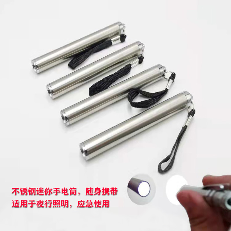 Gantungan kunci senter LED mini Stainless steel, lampu senter No. 7, lampu kuat, hadiah Luar Ruangan, malam, lampu elektronik berjalan