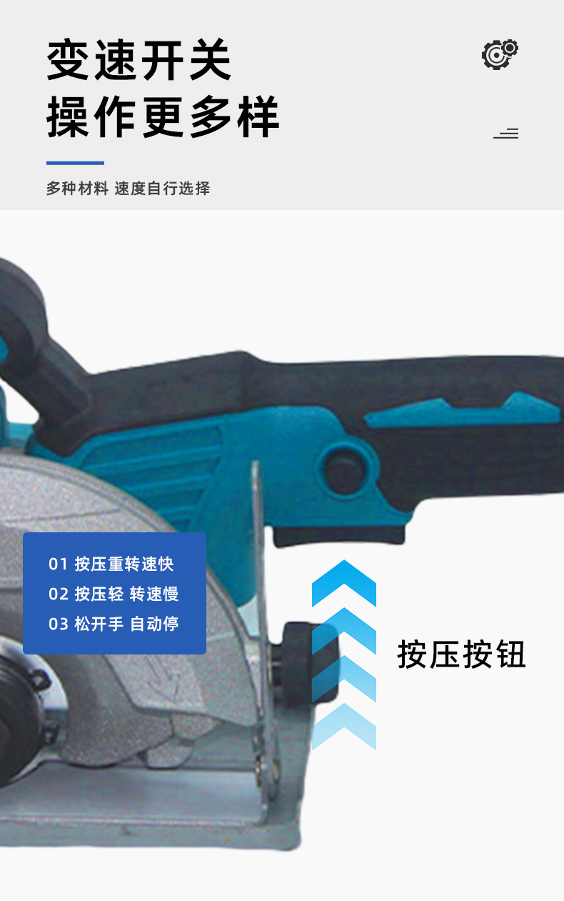 Gergaji bundar listrik baterai lithium 5 inci, mesin pemotong cakram daya tinggi yang dapat disesuaikan untuk marmer, kayu, dan ubin, gergaji bundar listrik dorong tangan