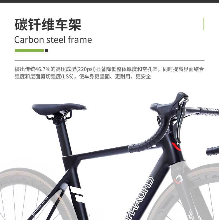 Sepeda balap Kawano FV390 berbahan serat karbon dengan kecepatan variabel, rem cakram oli, jalur kabel internal, setang melengkung, cocok untuk siswa pria dan wanita.