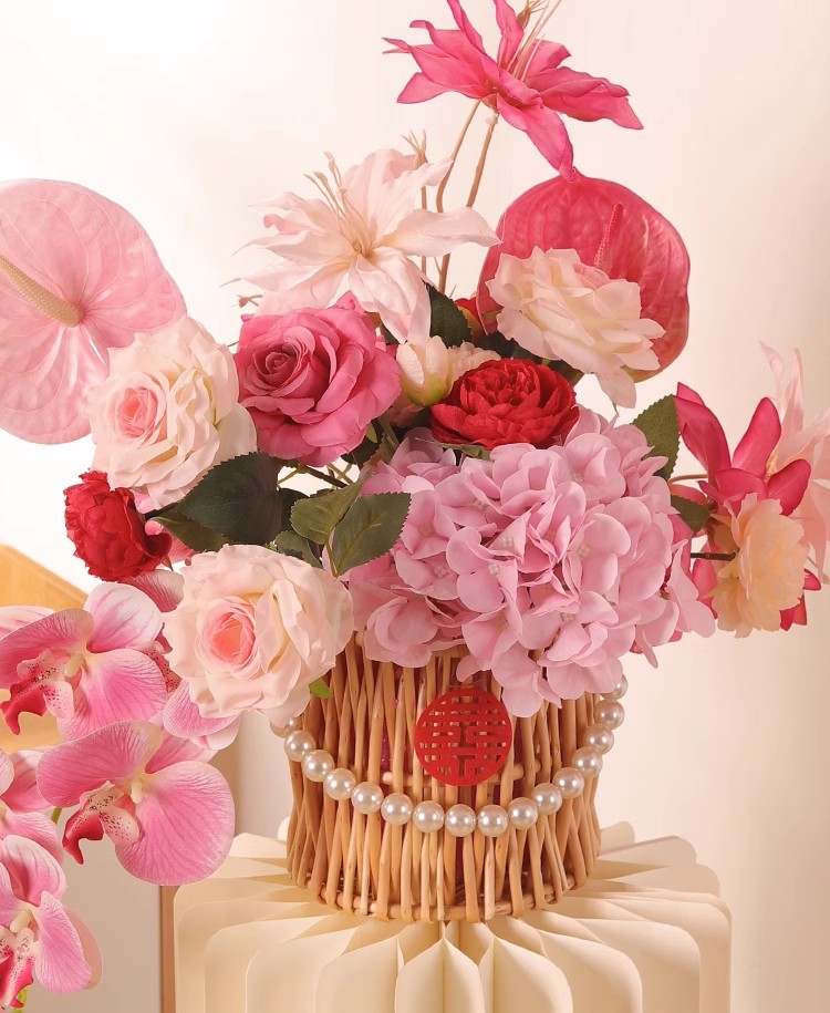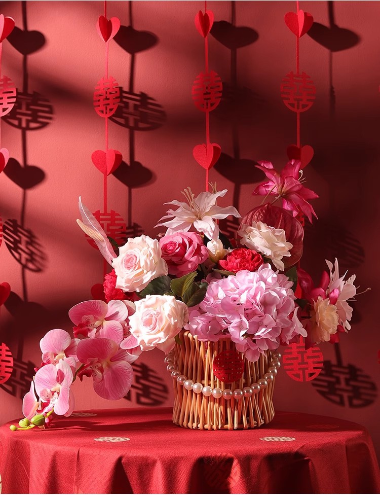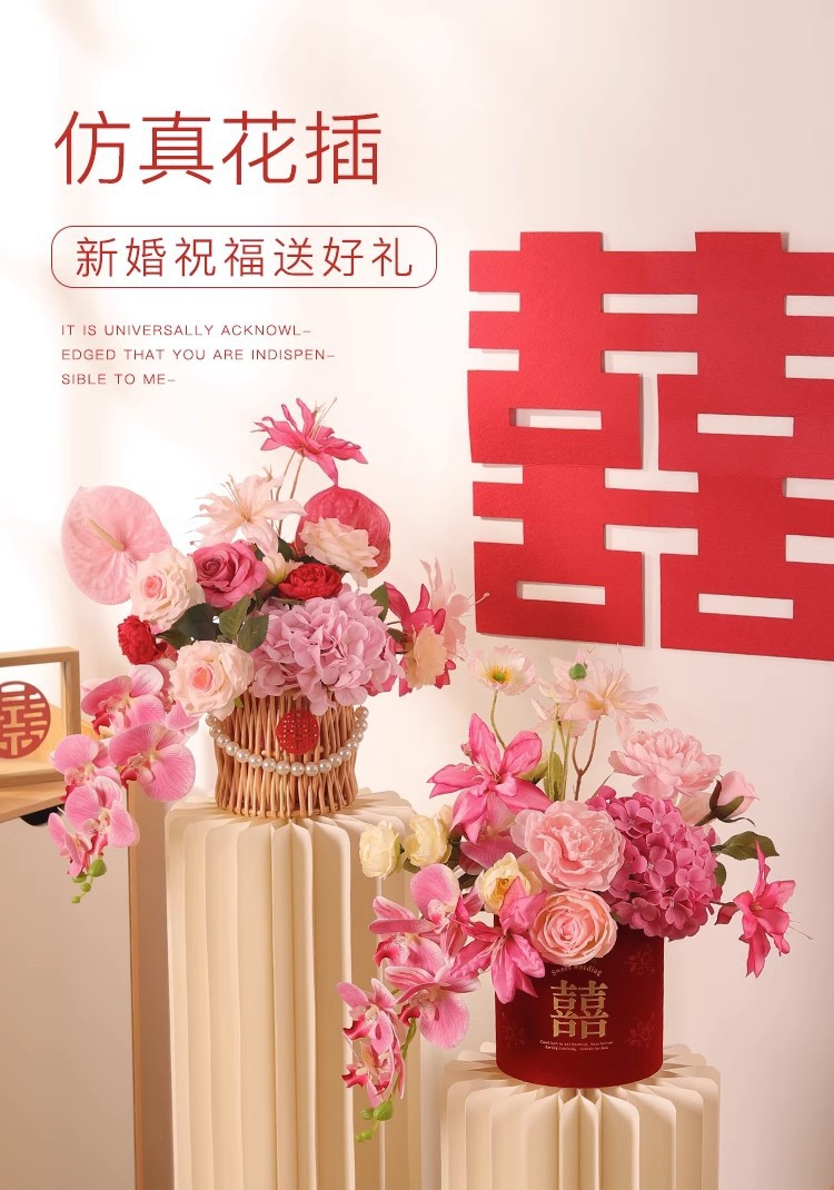 Ornamen dekorasi buket bunga palsu, hiasan pernikahan romantis ruang tamu kamar tidur samping tempat tidur