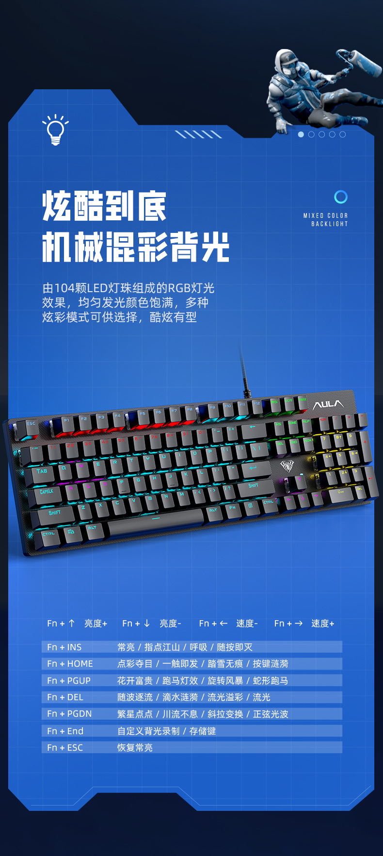 Taranula keyboard mekanis berkabel S2022 sumbu hijau USB komputer desktop Game laptop e-sports kunci kopi Internet makan ayam