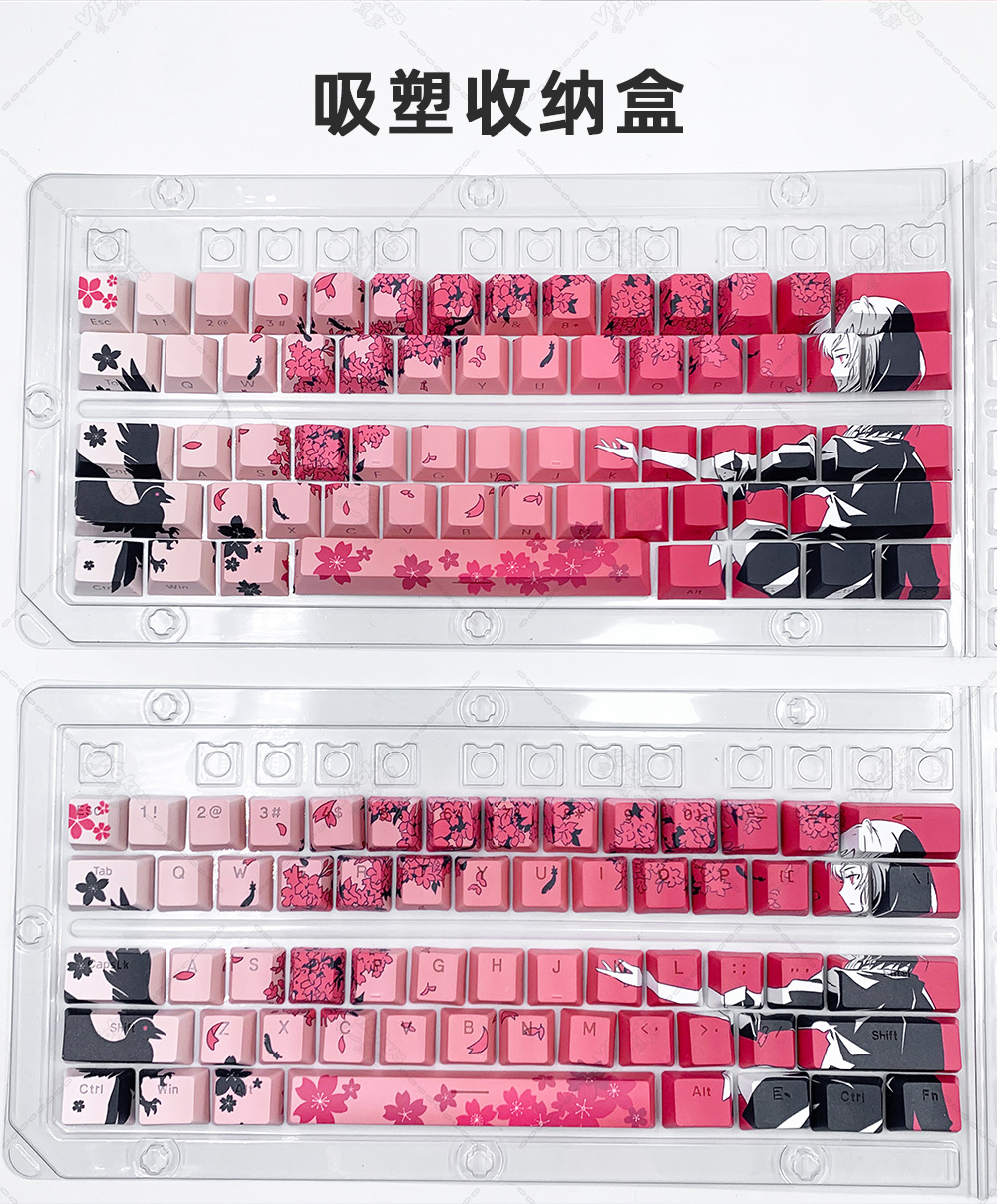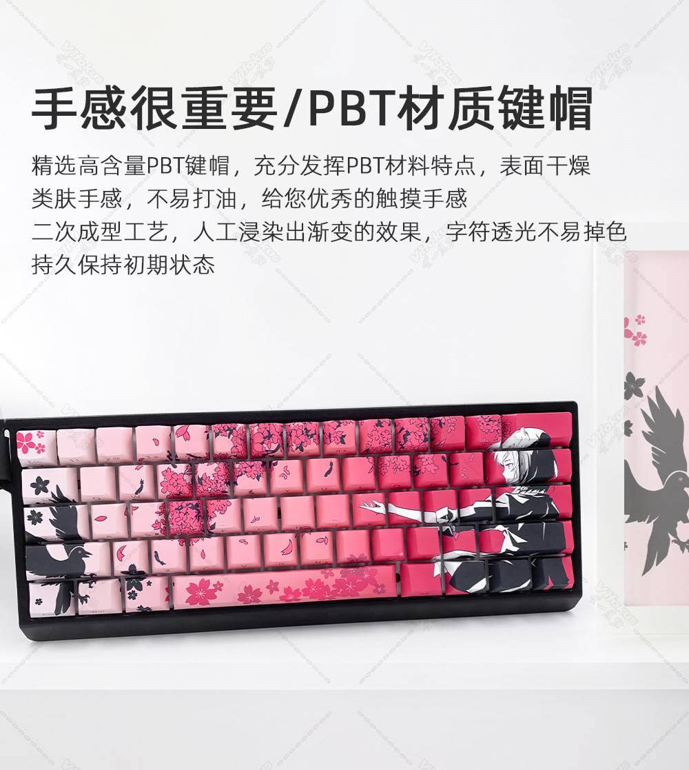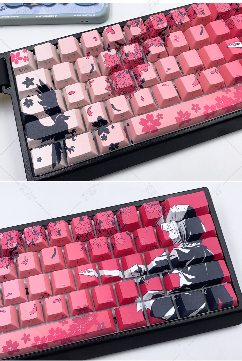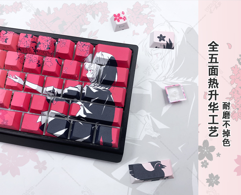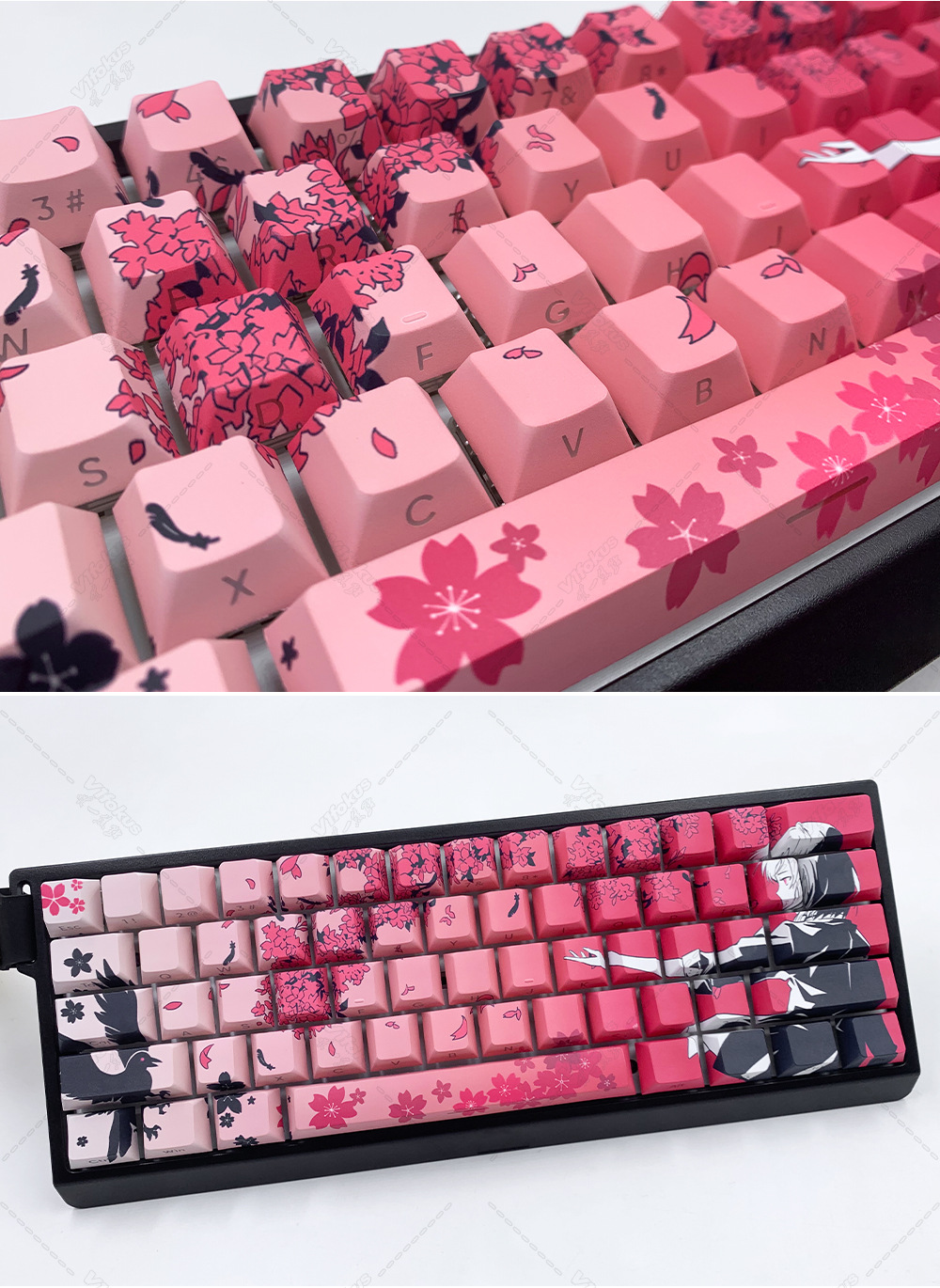 Cocok dengan WOOTING Keyboard Tembus Keypad Raven Sakura Sakura Disesuaikan PBT Cetak Lima Sisi