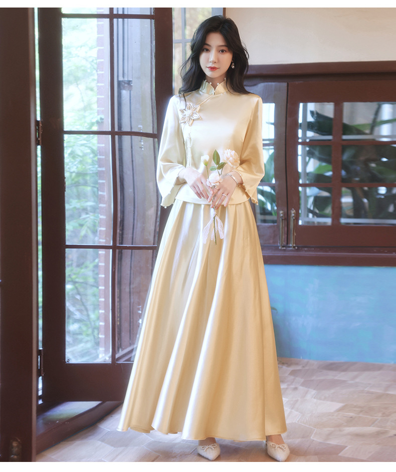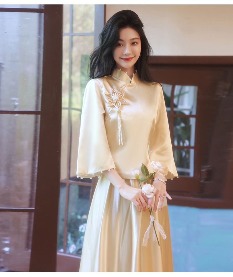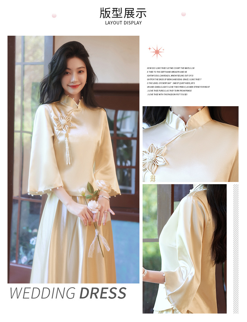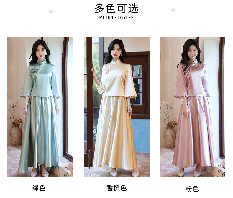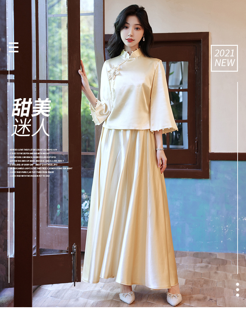 Gaun pengiring pengantin sampanye gaun kecil satin cheongsam Tiongkok gaun pengiring pengantin wanita pernikahan musim semi Super peri temperamen gaun pengiring pengantin
