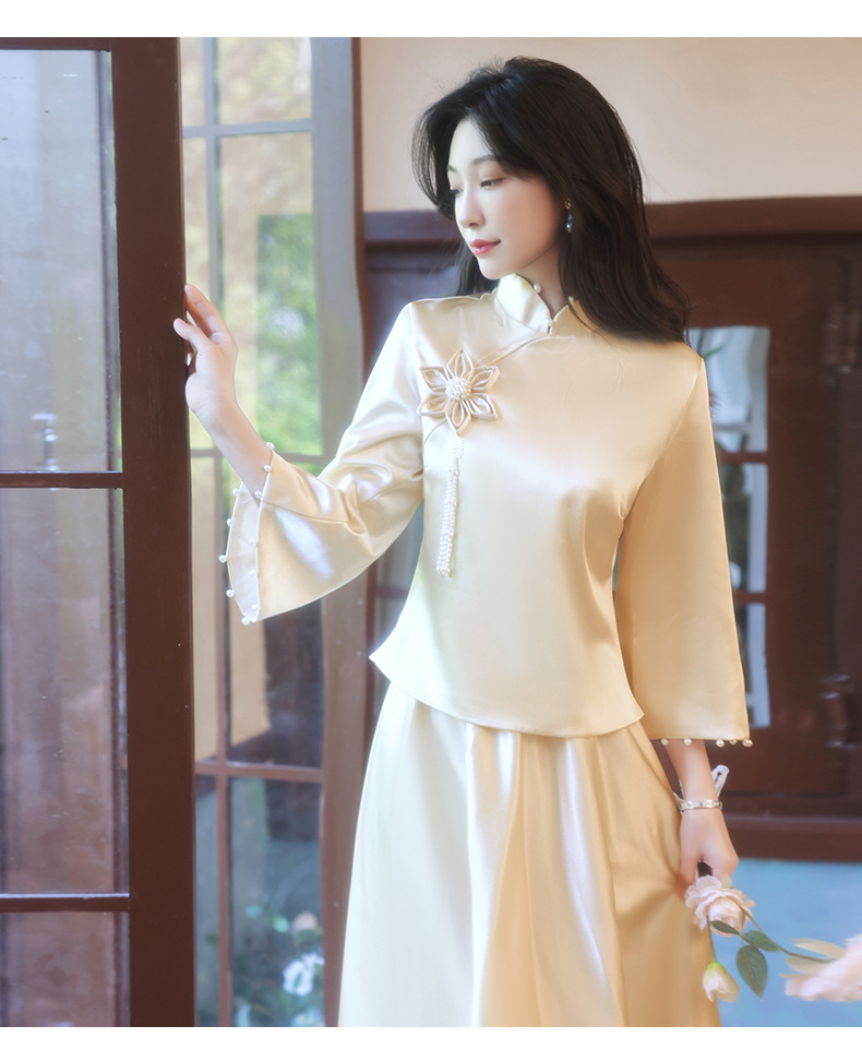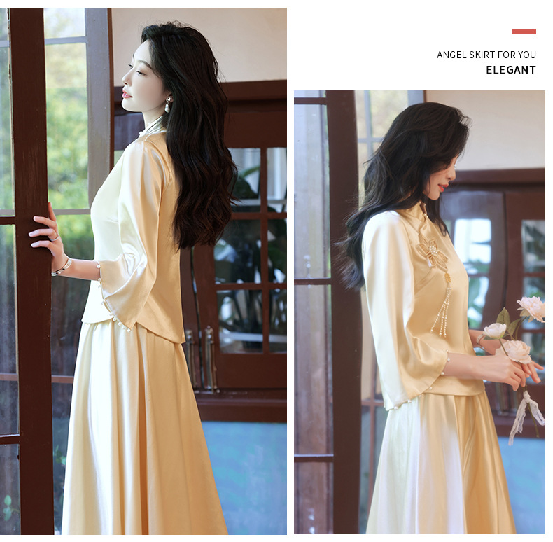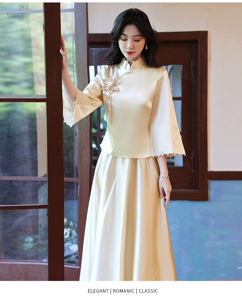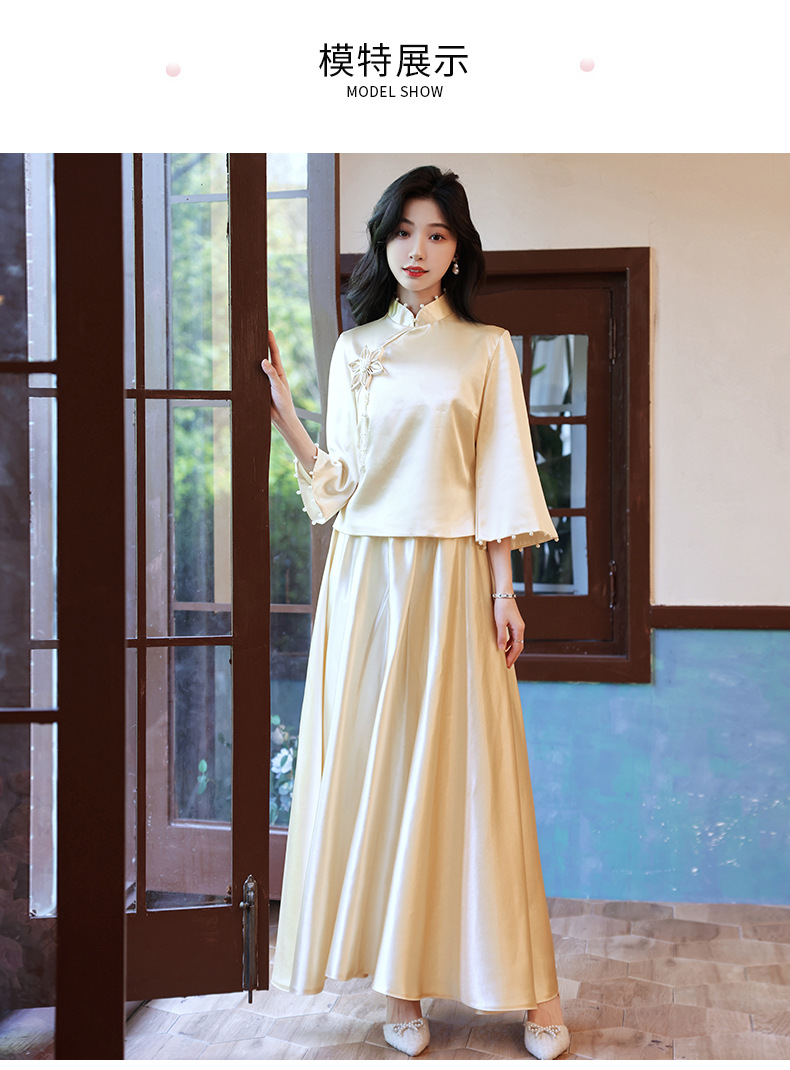 Gaun pengiring pengantin sampanye gaun kecil satin cheongsam Tiongkok gaun pengiring pengantin wanita pernikahan musim semi Super peri temperamen gaun pengiring pengantin