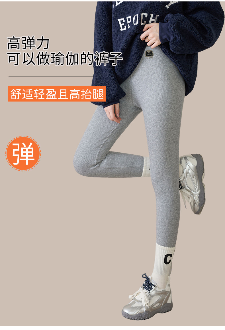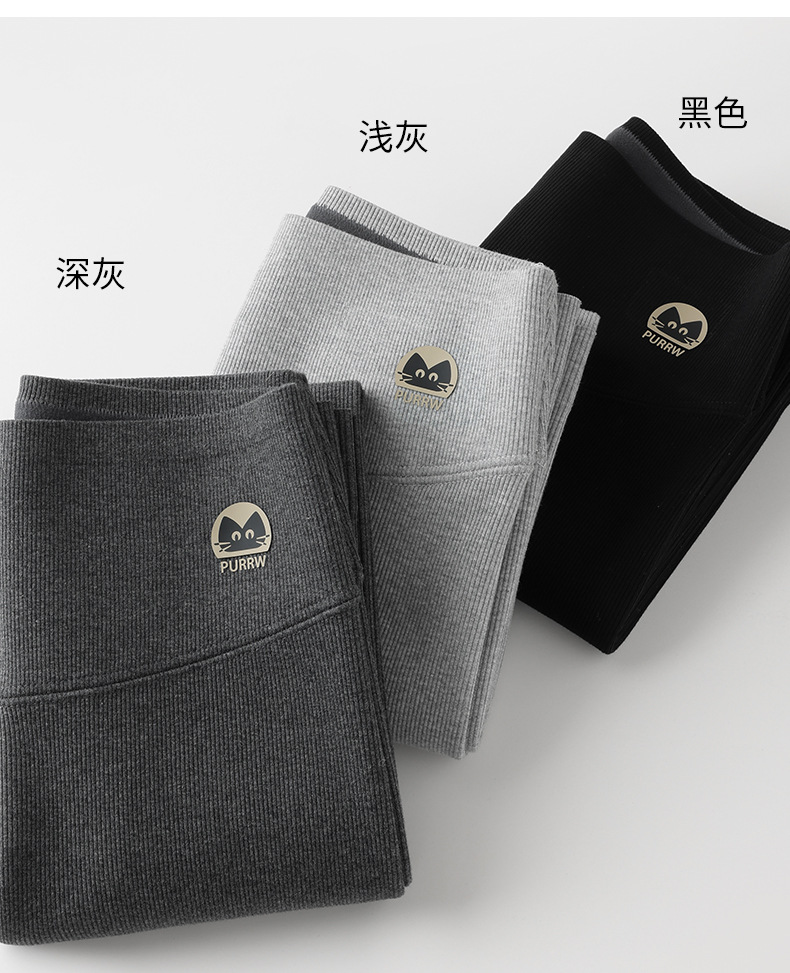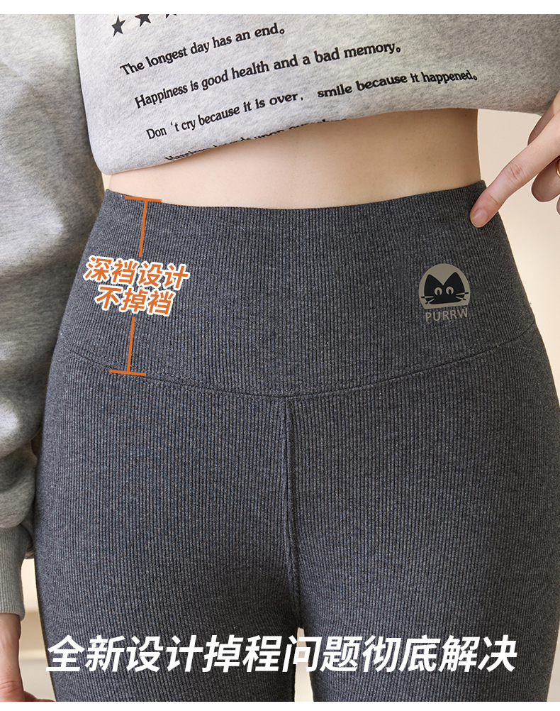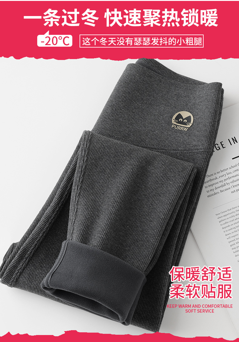 Legging bergaris vertikal berbahan katun tebal berlapis bulu tipis untuk musim semi dan musim gugur, celana katun berpinggang tinggi untuk wanita, celana termal ukuran besar.