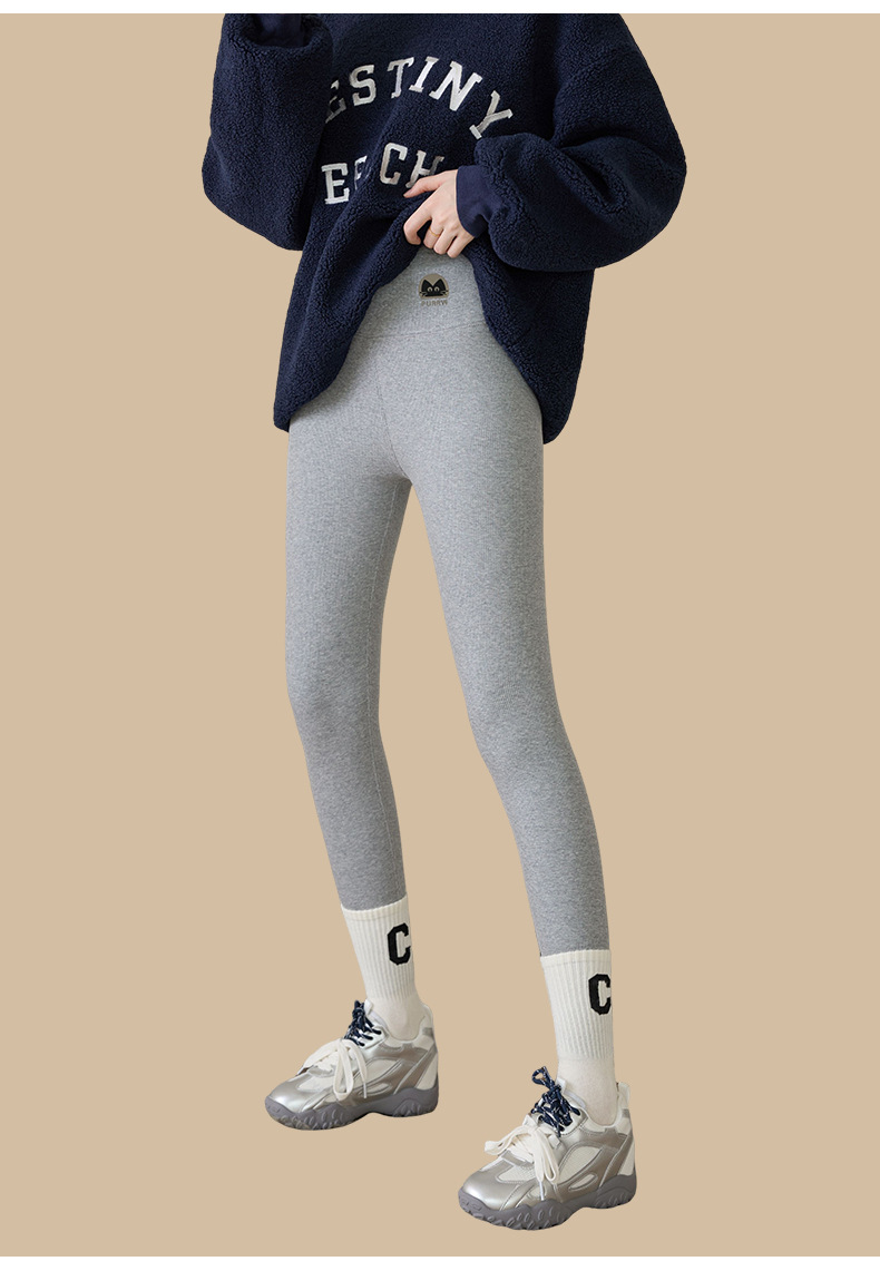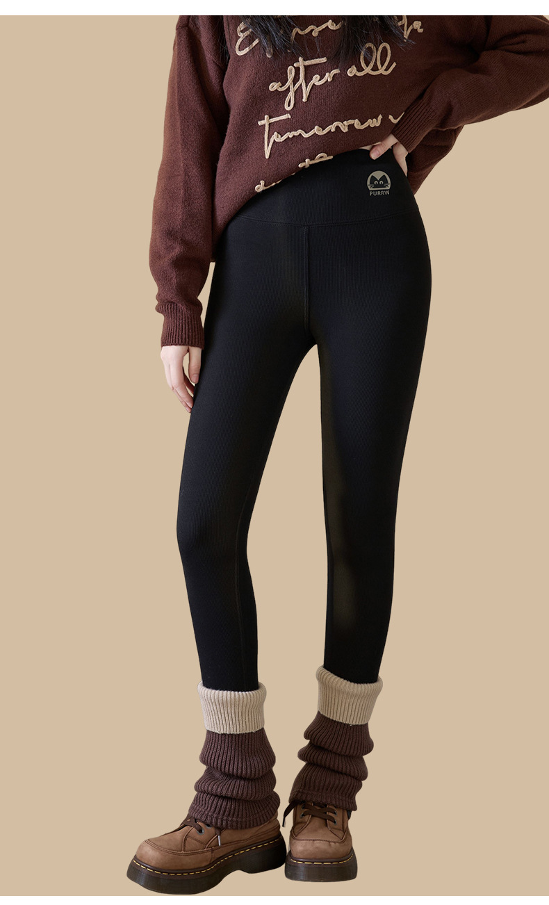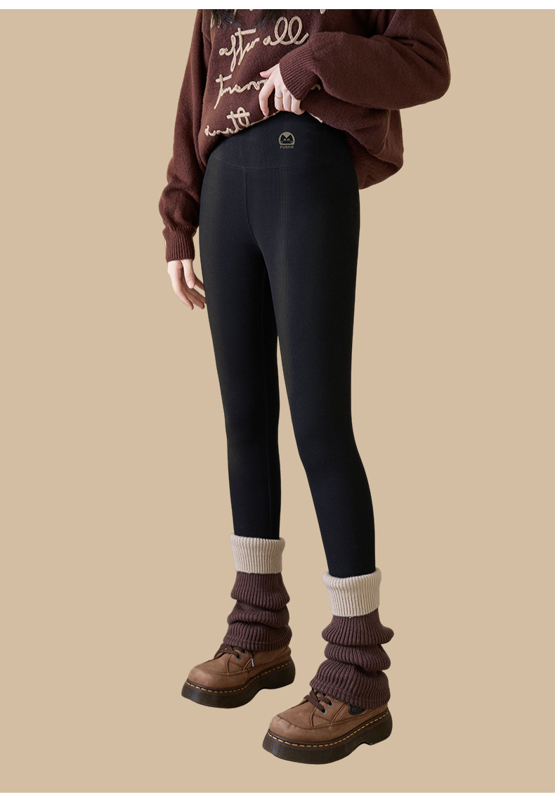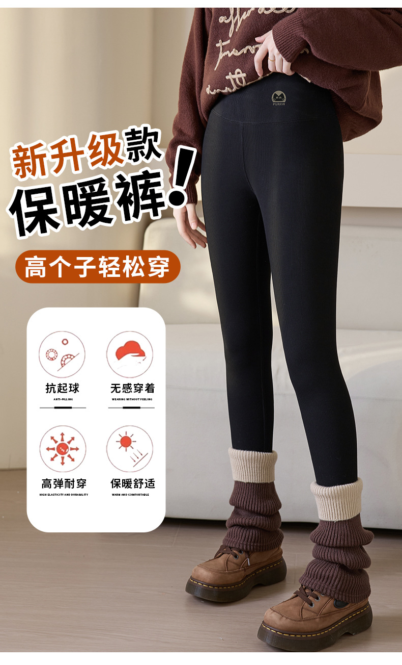 Legging bergaris vertikal berbahan katun tebal berlapis bulu tipis untuk musim semi dan musim gugur, celana katun berpinggang tinggi untuk wanita, celana termal ukuran besar.
