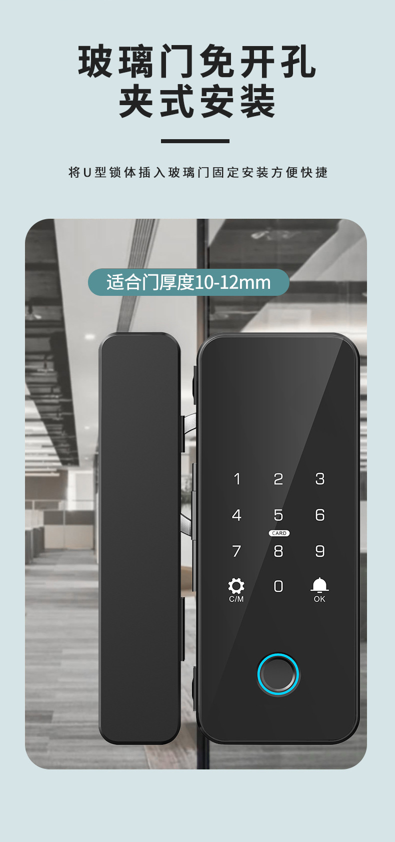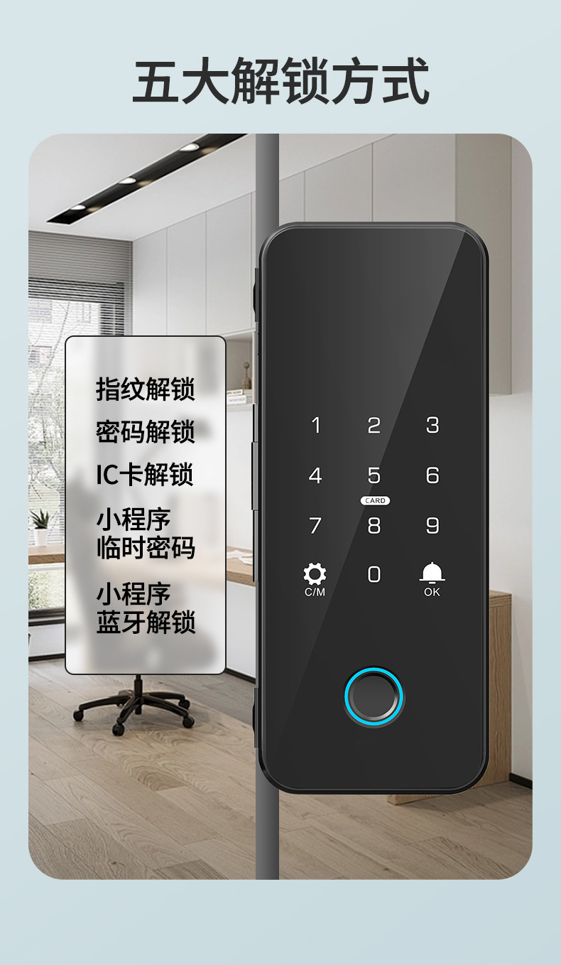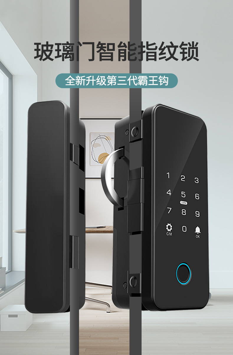 Shuangshi kunci pintu kaca pelindung sidik jari TTLOCK melalui kunci TUYA graffiti kunci sandi pintar bebas lubang pintu ganda