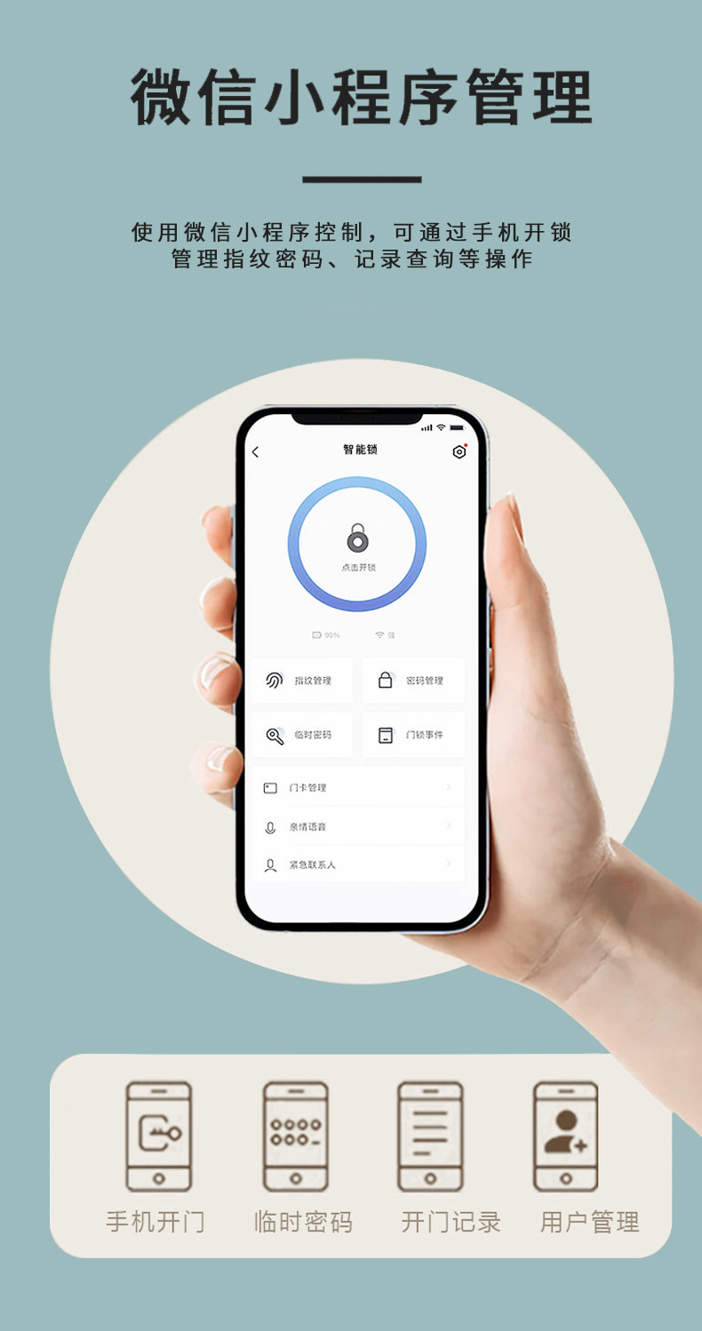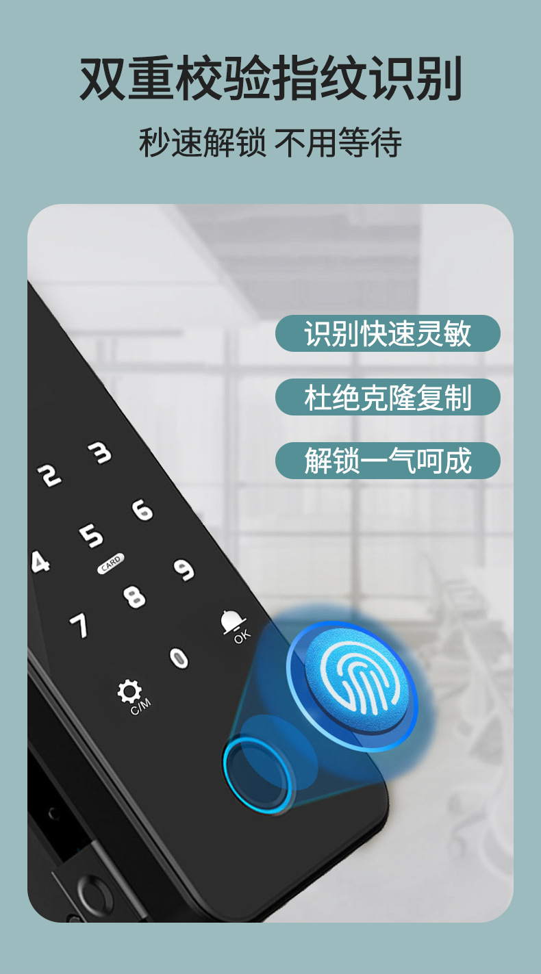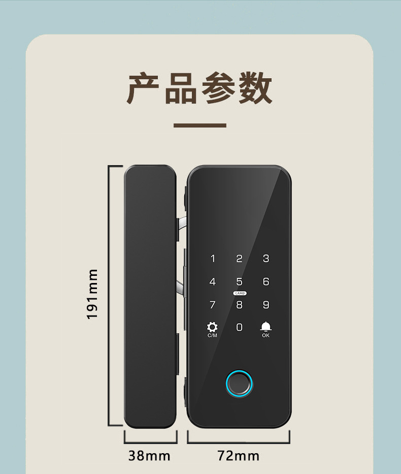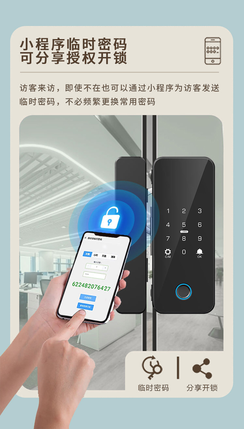 Shuangshi kunci pintu kaca pelindung sidik jari TTLOCK melalui kunci TUYA graffiti kunci sandi pintar bebas lubang pintu ganda