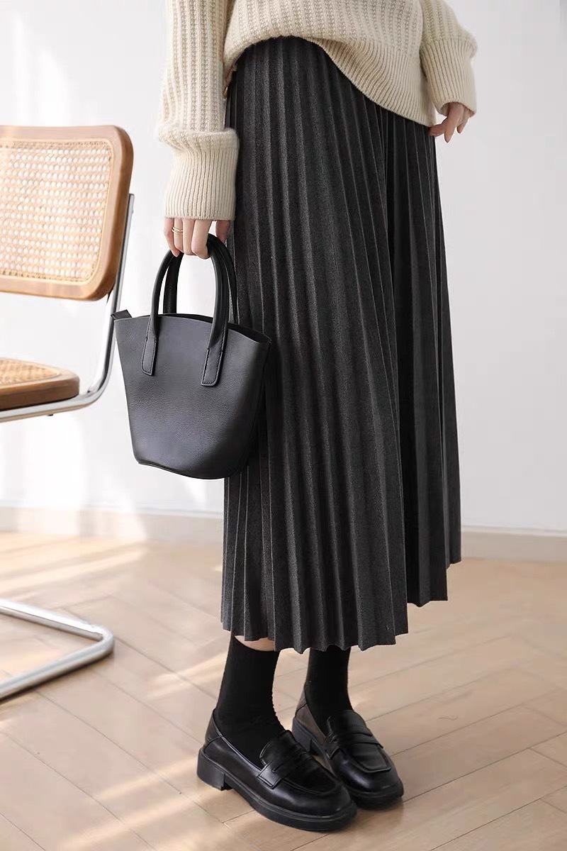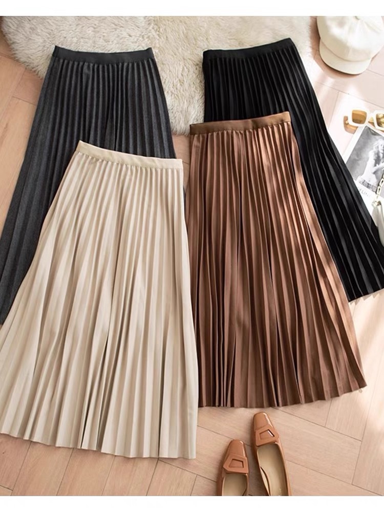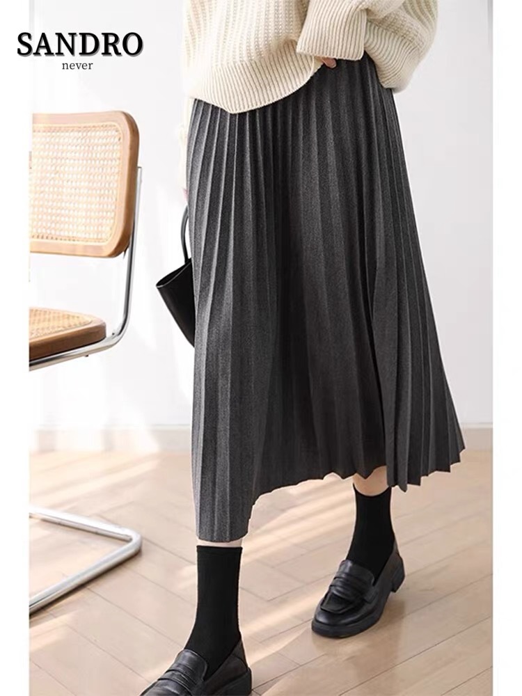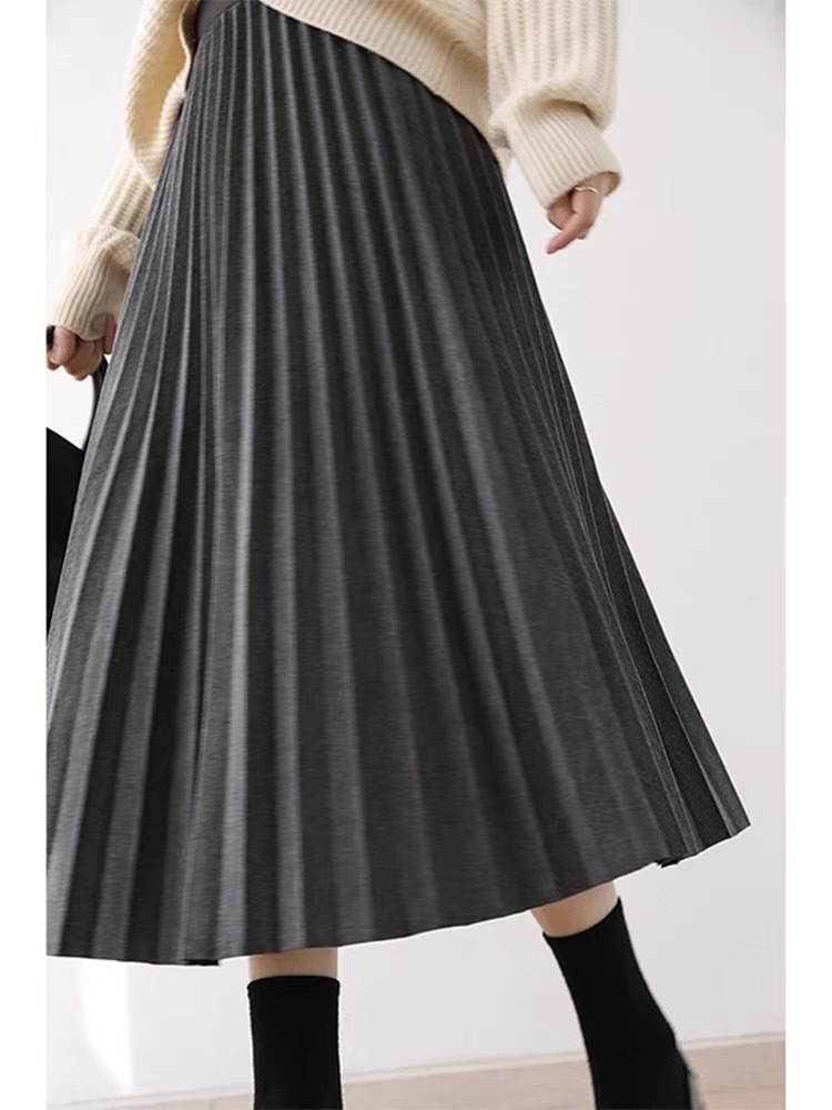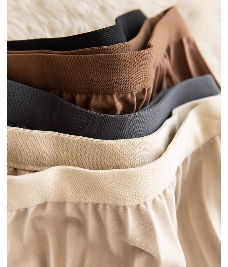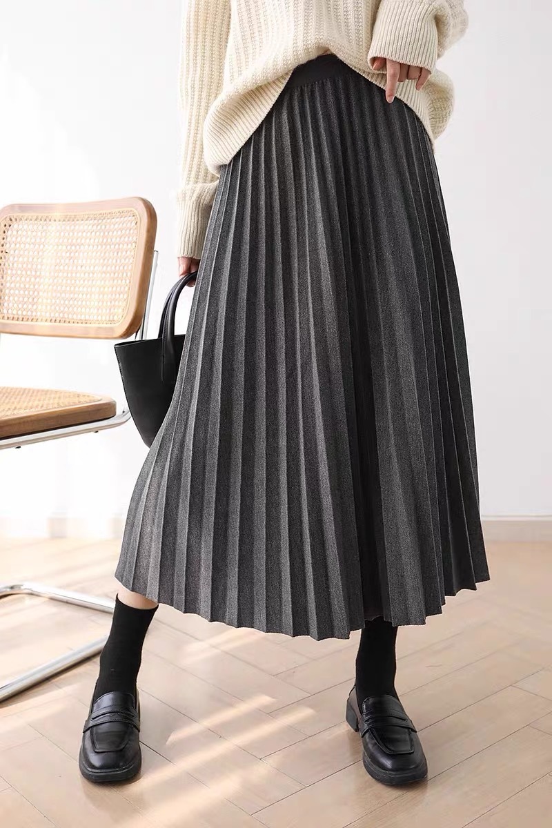 Rok wol rok lipit musim gugur dan musim dingin panjang sedang 2026 musim semi baru tebal warna polos membuat tampil langsing rok A-line berpinggang tinggi