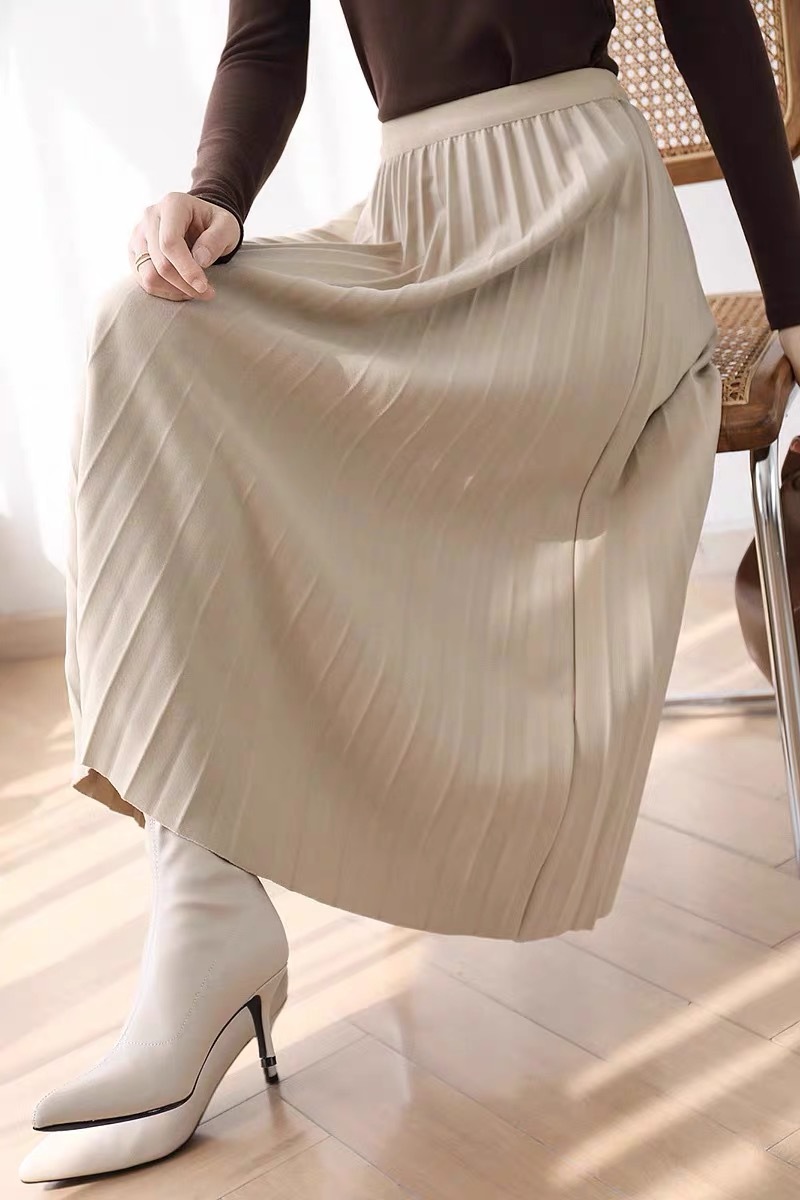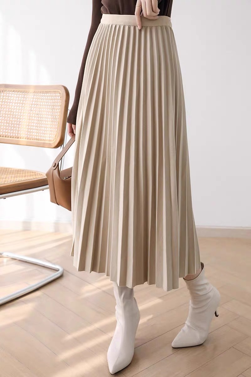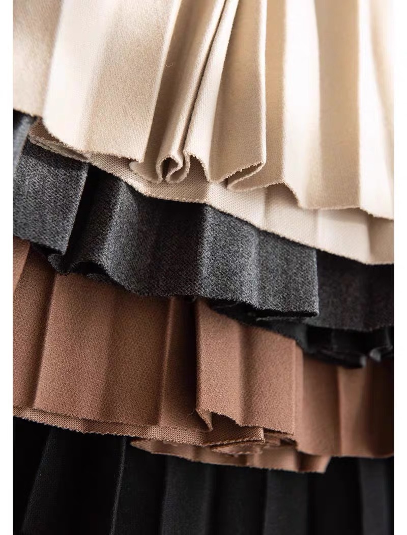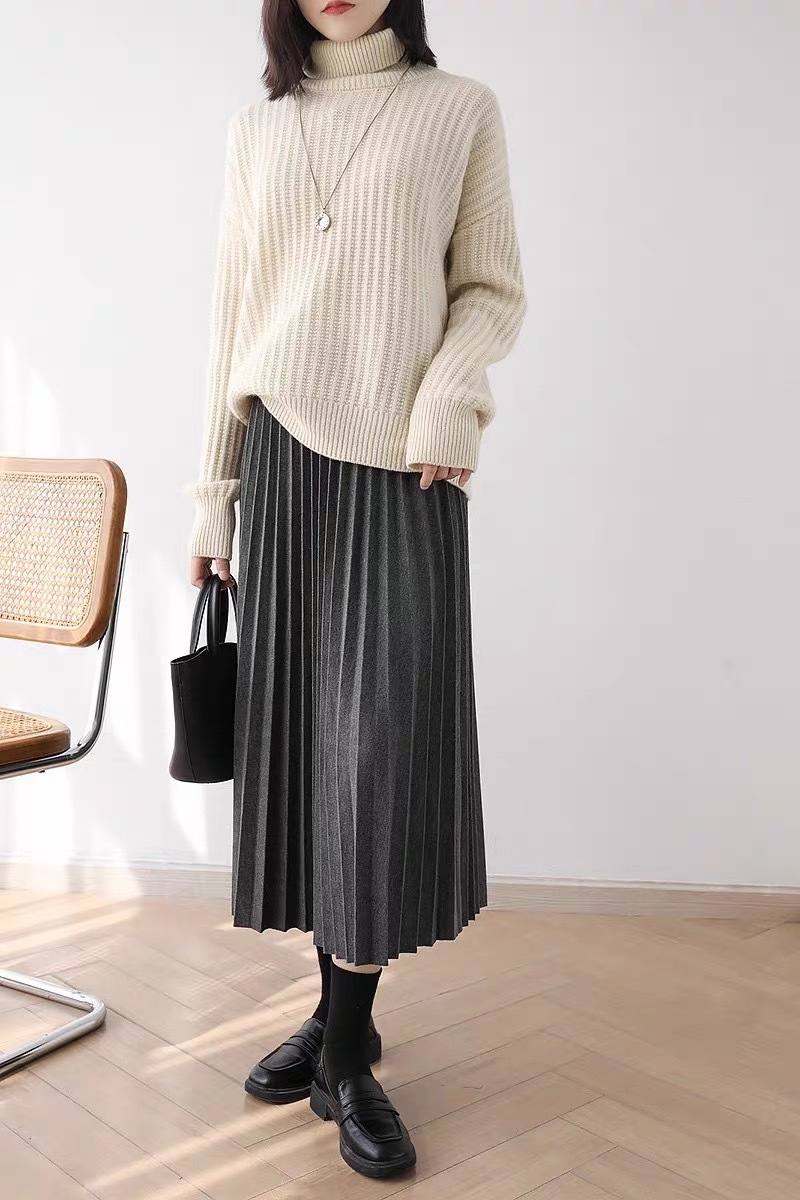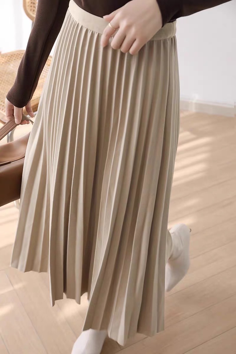Rok wol rok lipit musim gugur dan musim dingin panjang sedang 2026 musim semi baru tebal warna polos membuat tampil langsing rok A-line berpinggang tinggi
