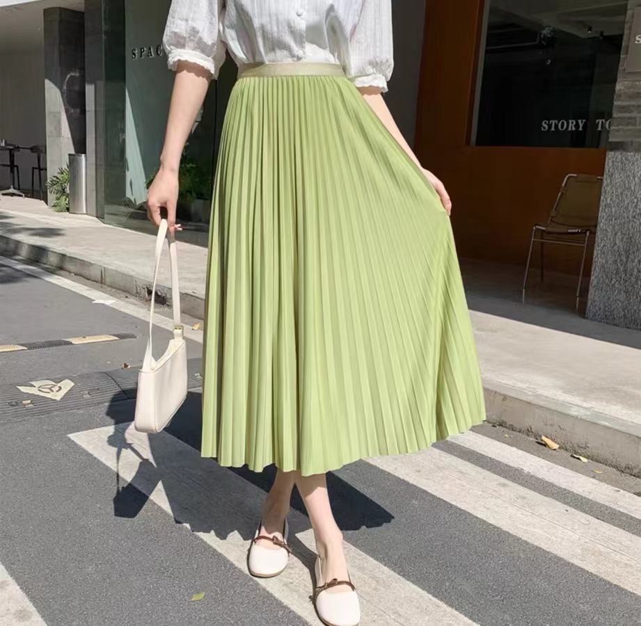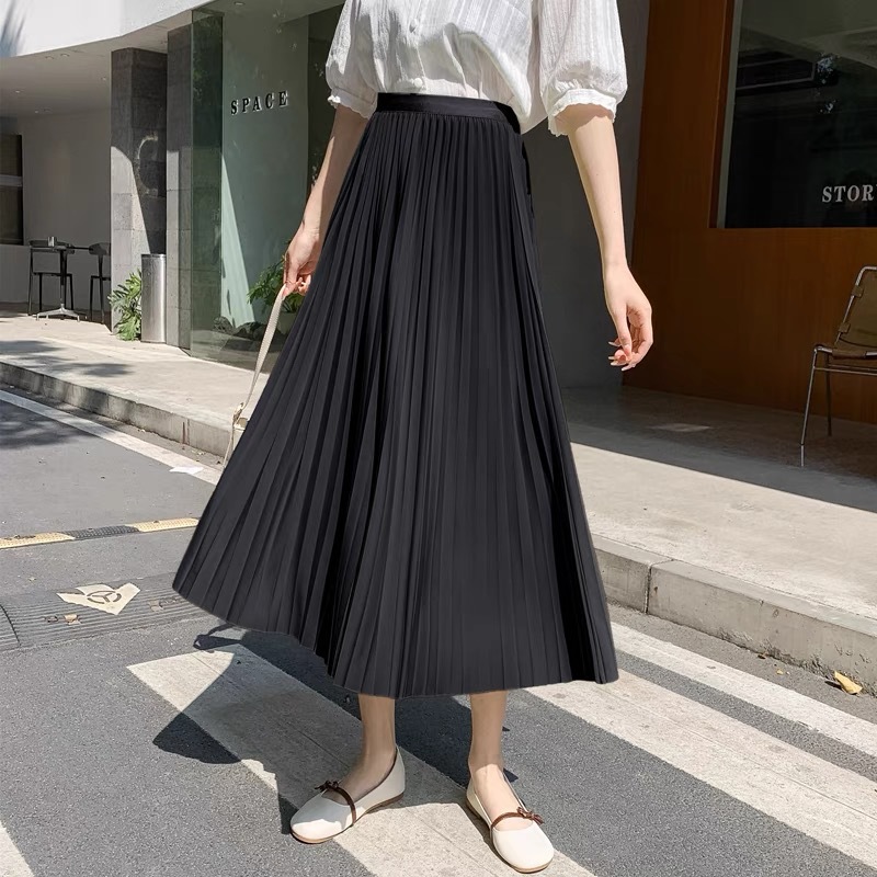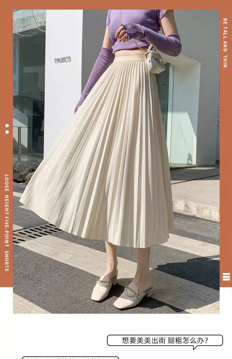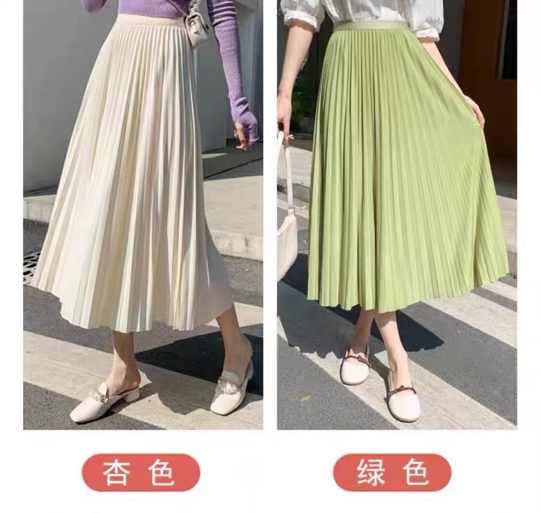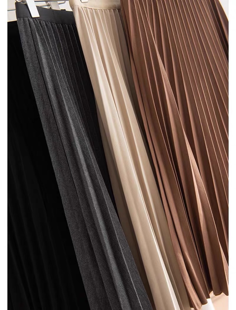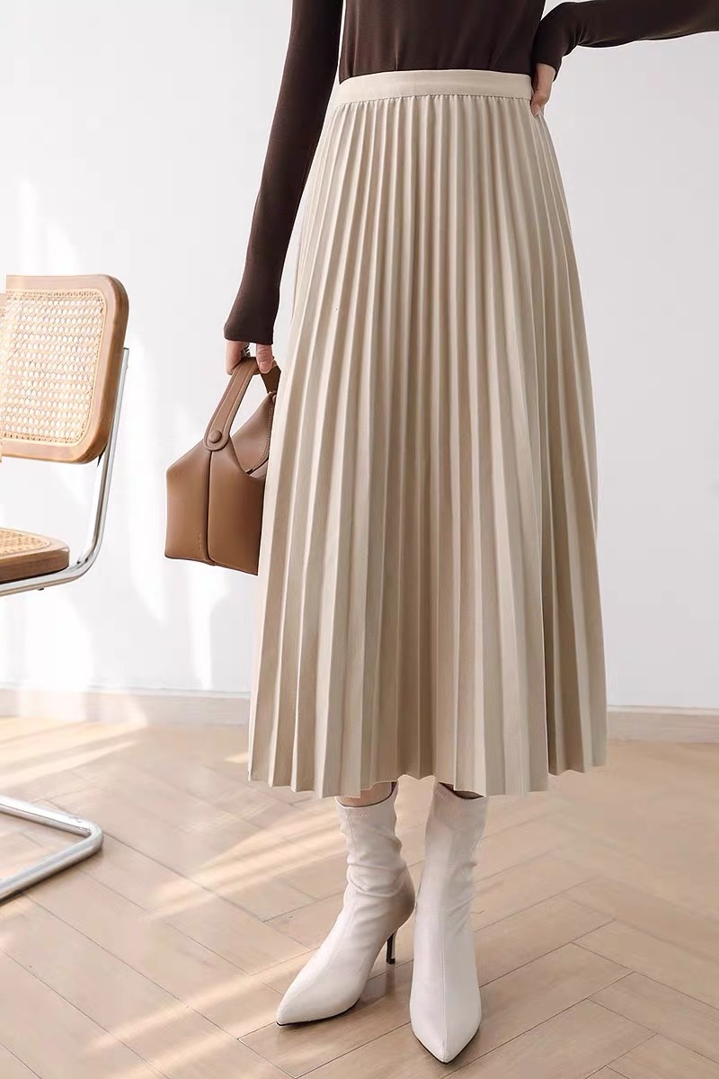 Rok wol rok lipit musim gugur dan musim dingin panjang sedang 2026 musim semi baru tebal warna polos membuat tampil langsing rok A-line berpinggang tinggi