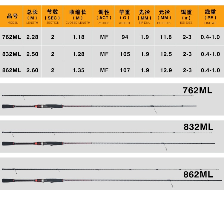 Lurekiller tongkat cumi-cumi, Aksesori full FUJI Jepang 762ML/832ML/862ML