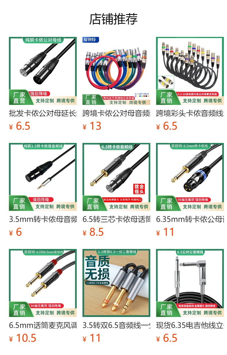 Kabel audio 6.5 ke Carnon wanita, 6.35 besar tiga inti ke XLR kabel mikrofon seimbang kabel audio mixer