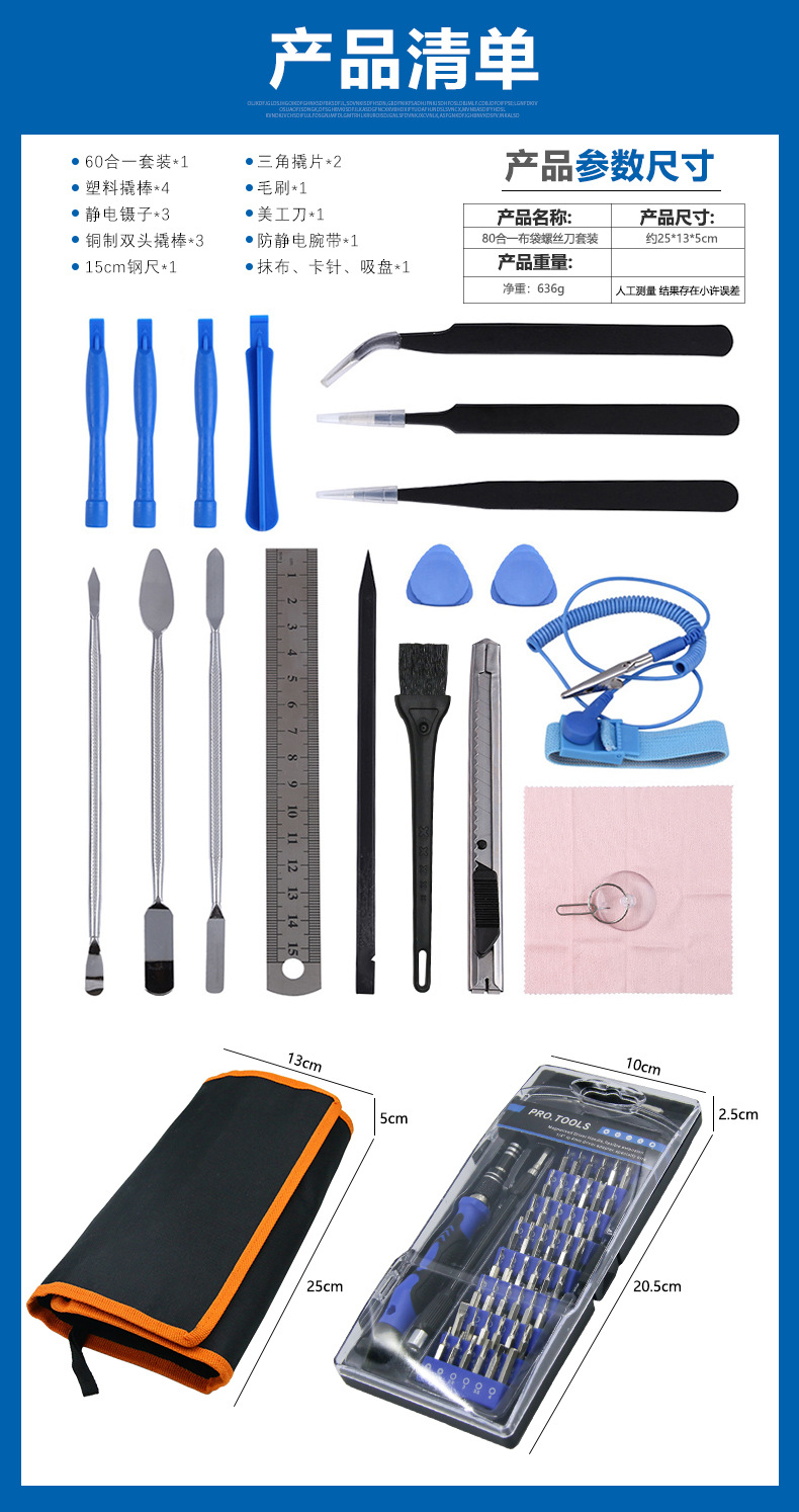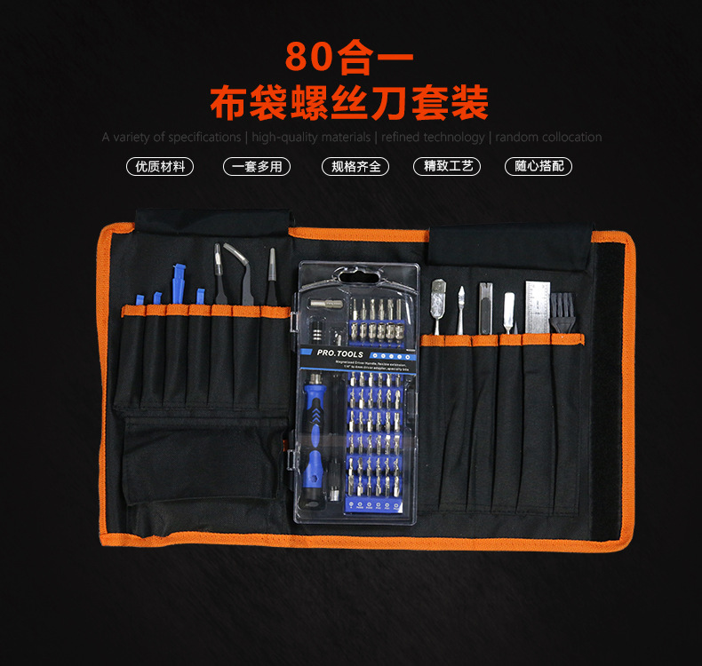 Tas kain portabel Obeng multifungsi 80 dalam satu DIY alat perbaikan ponsel telekomunikasi pemblokir setelan kepala batch