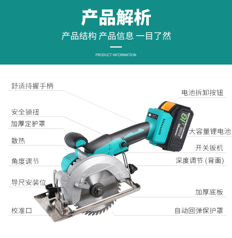 Gergaji bundar listrik Lithium, mesin marmer pertukangan portabel, Senter dapat diisi ulang, gergaji kayu bakar multifungsi Seni 5 inci