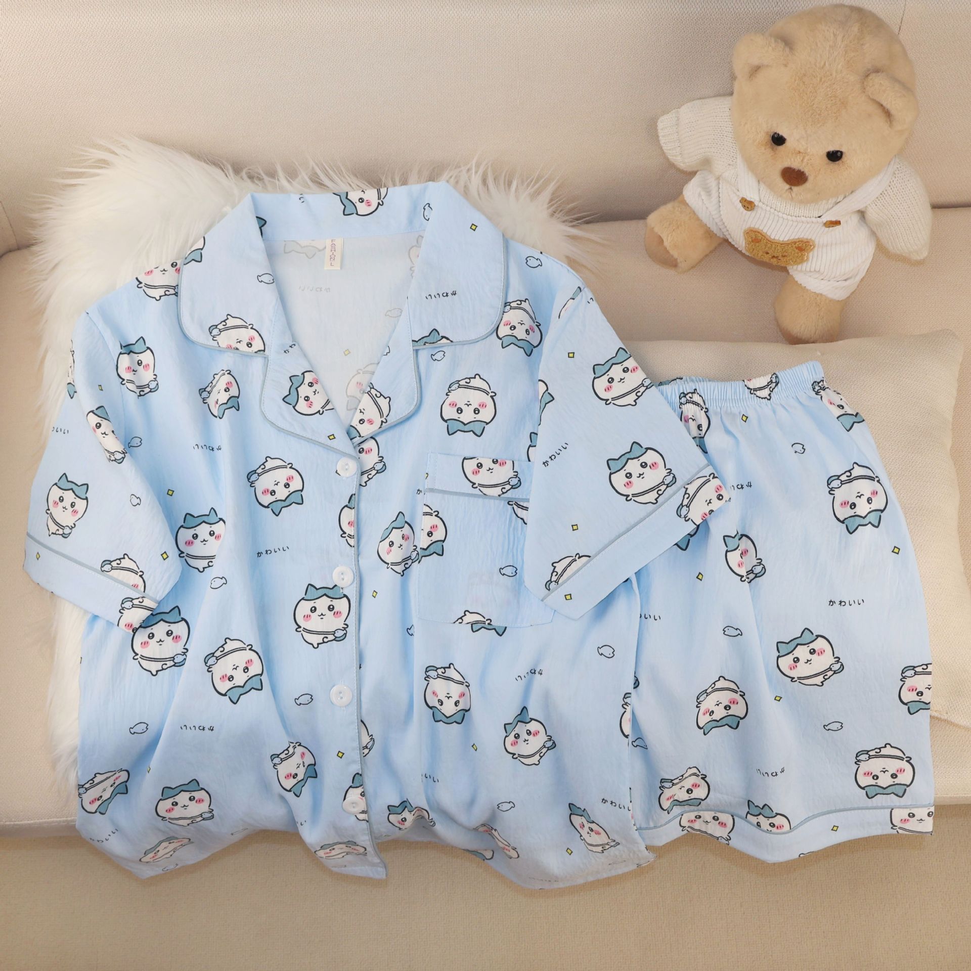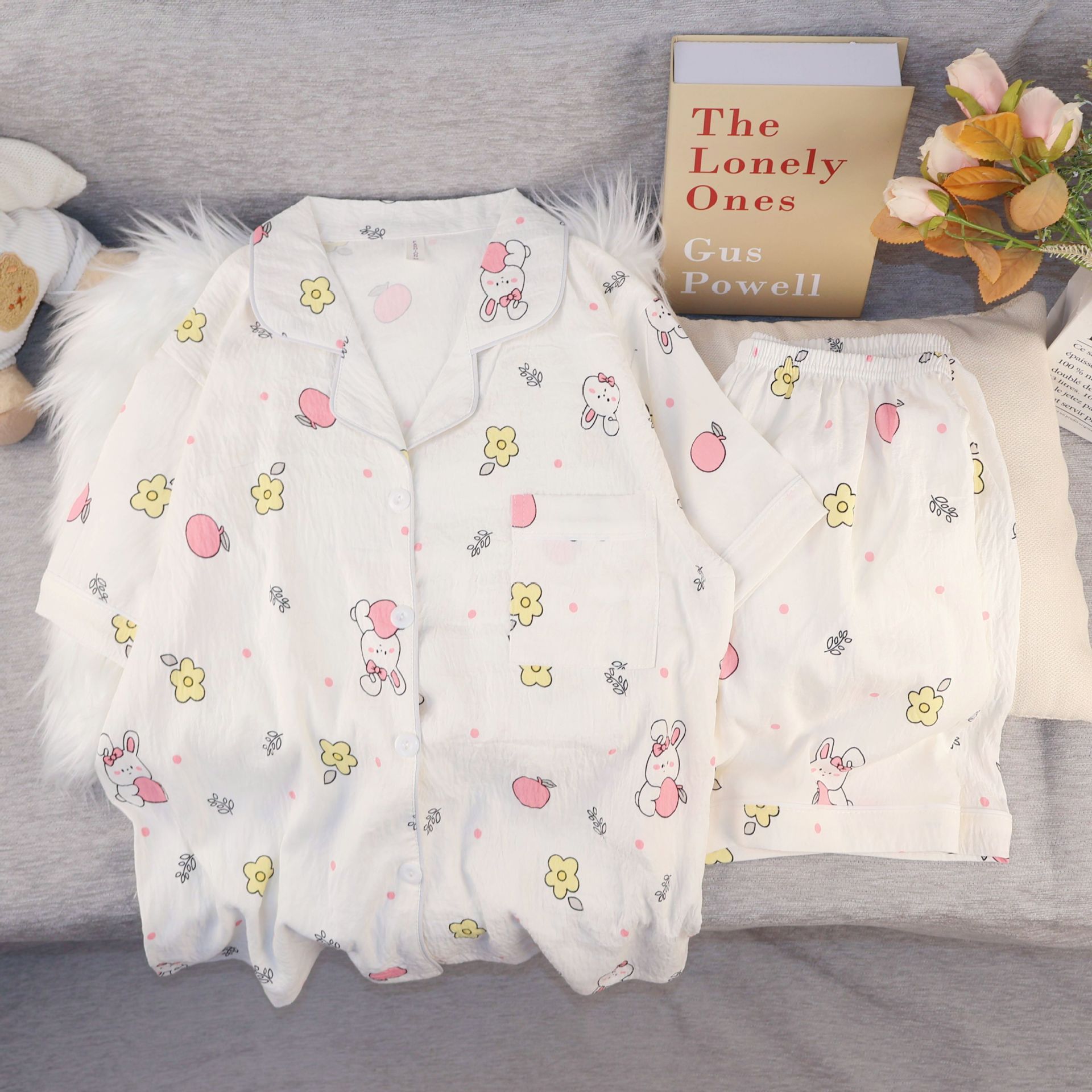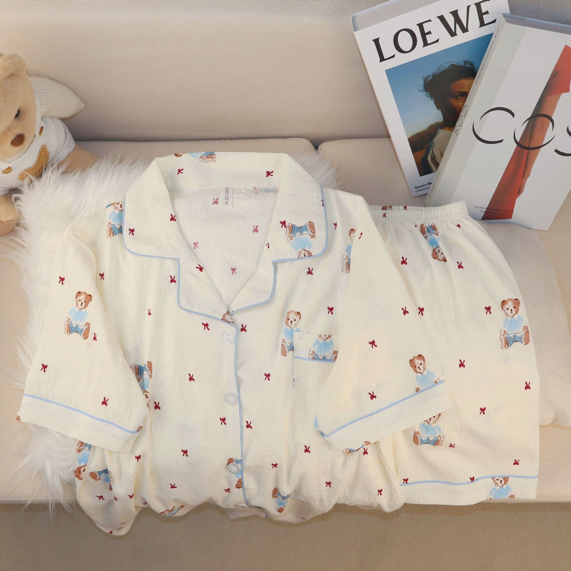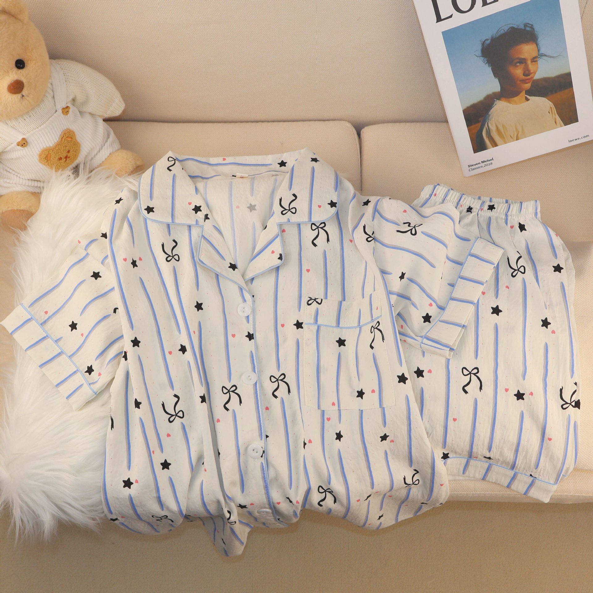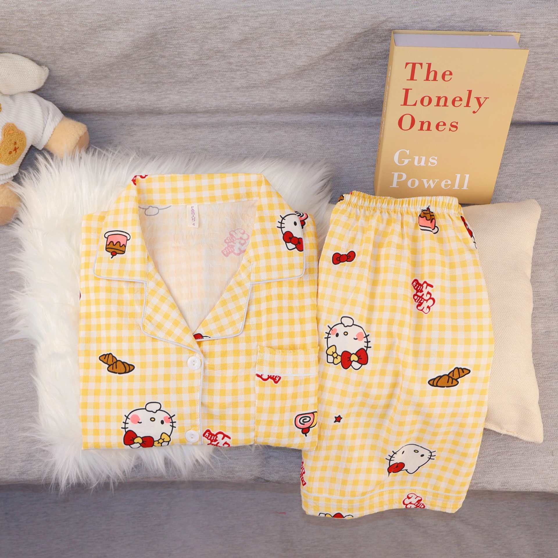 Piyama Model Baru Wanita Musim Panas Kapas Awan Ganda Pendek Gadis Kecil Lucu Kerah Lengan Pendek Celana Pendek Pakaian Rumah Set Grosir