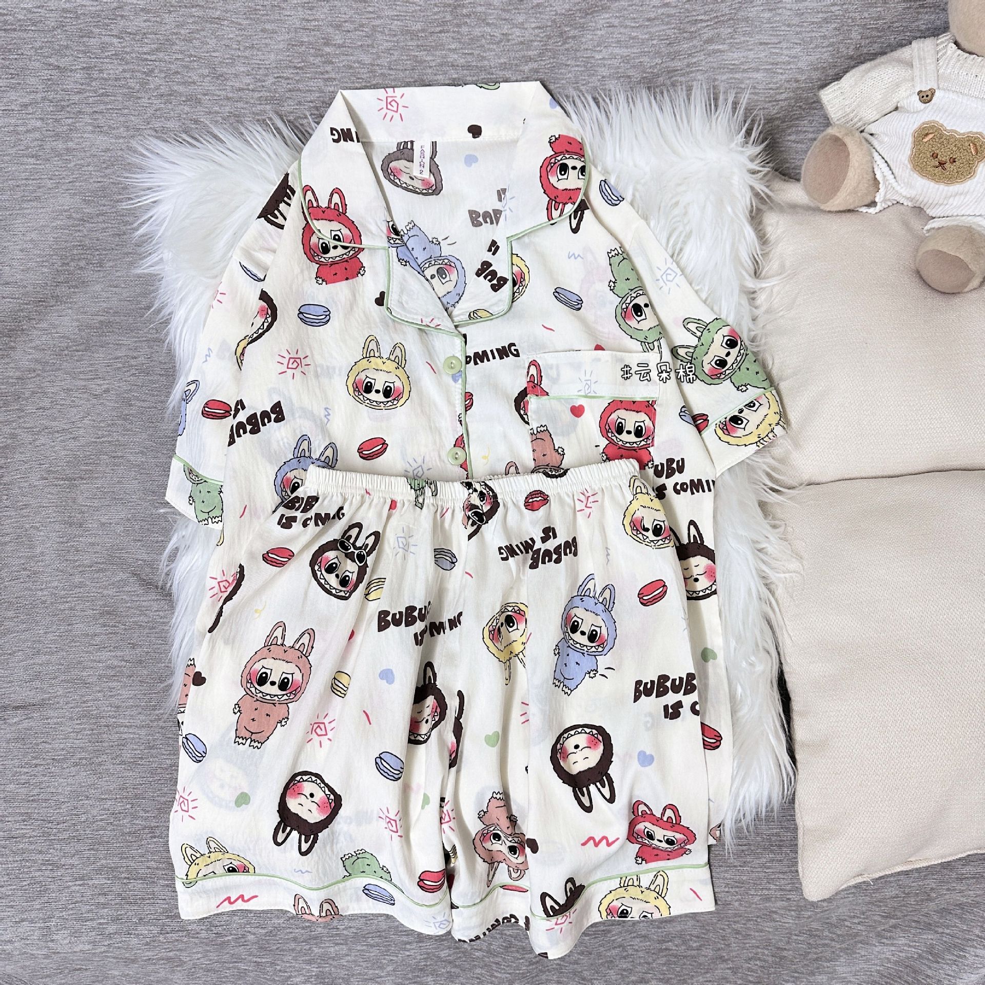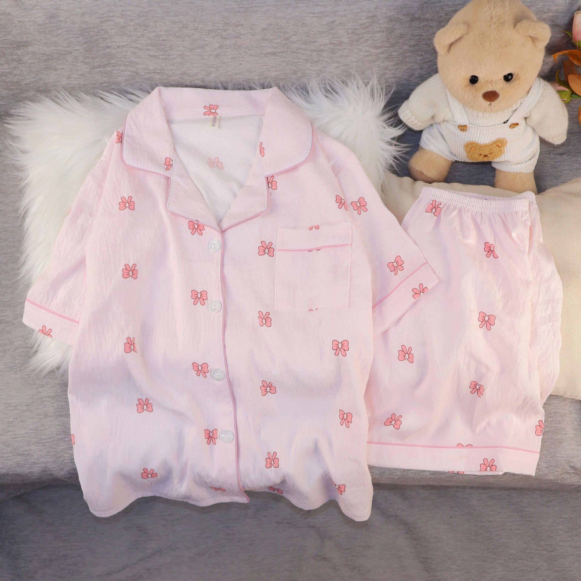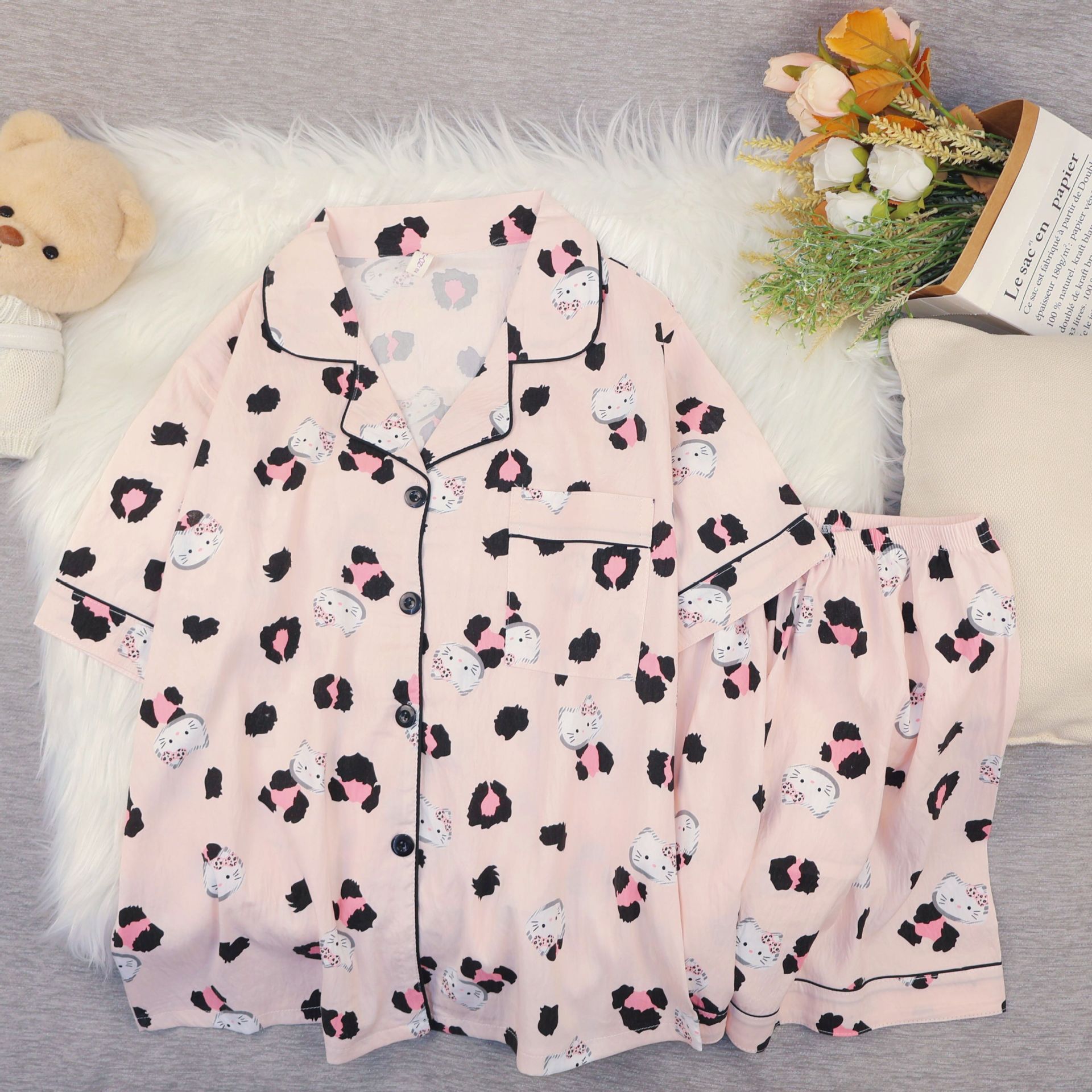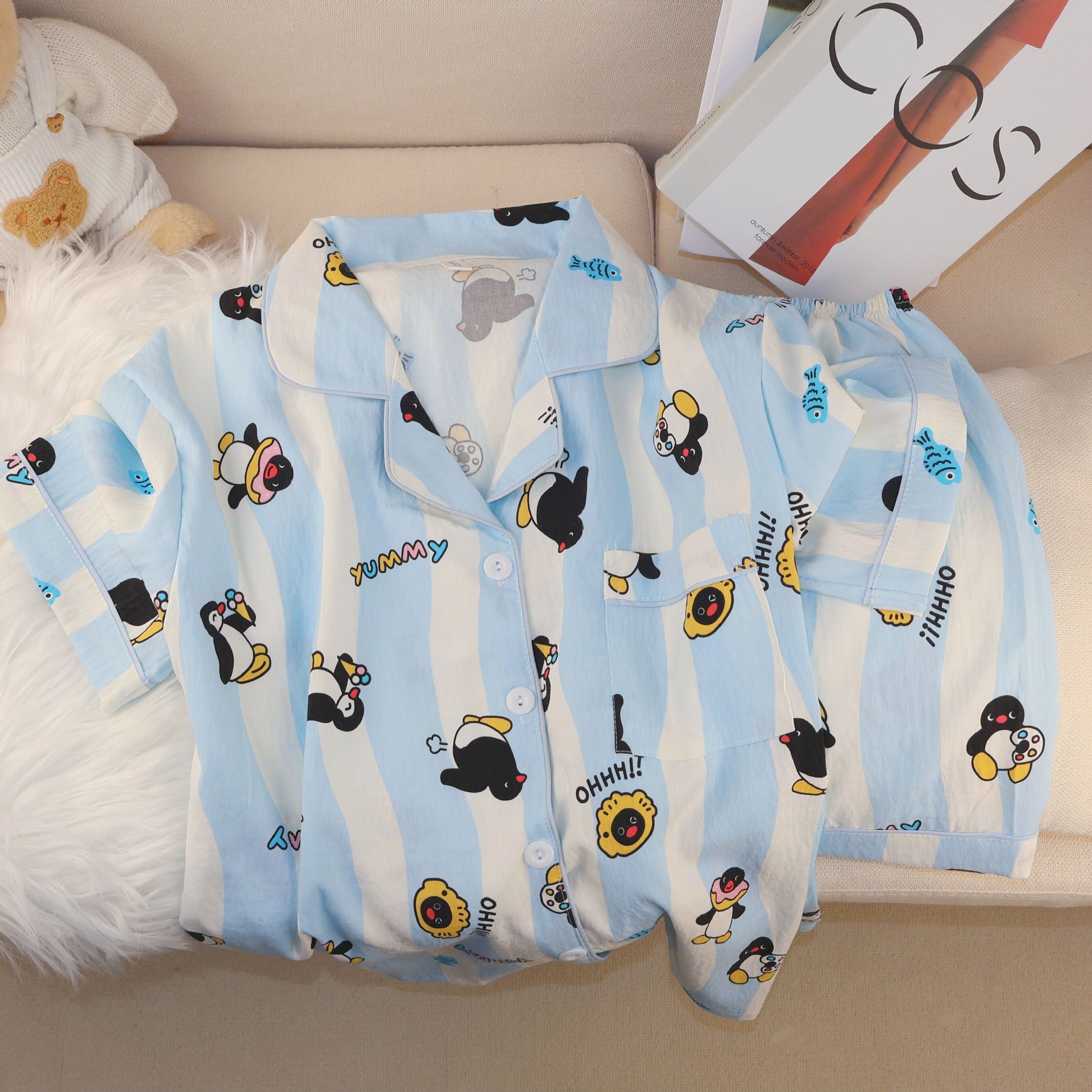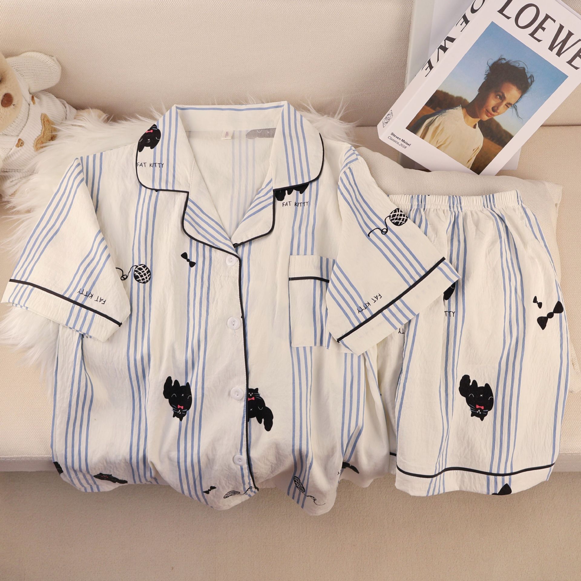 Piyama Model Baru Wanita Musim Panas Kapas Awan Ganda Pendek Gadis Kecil Lucu Kerah Lengan Pendek Celana Pendek Pakaian Rumah Set Grosir