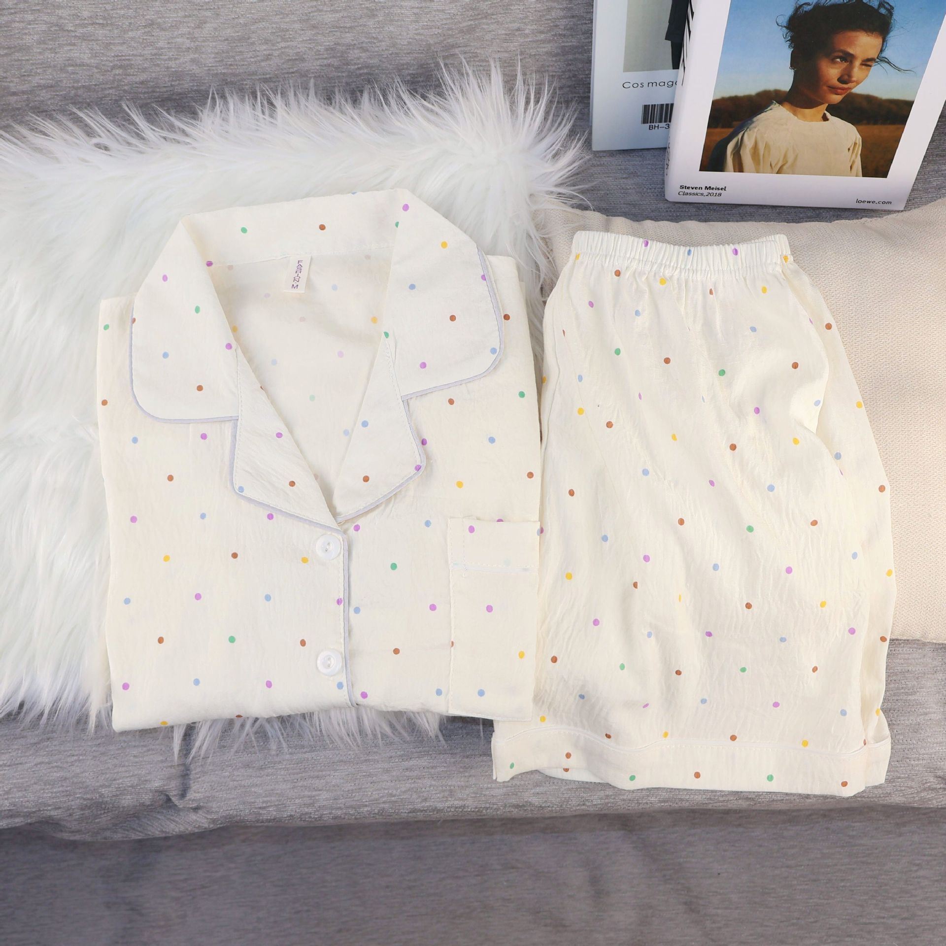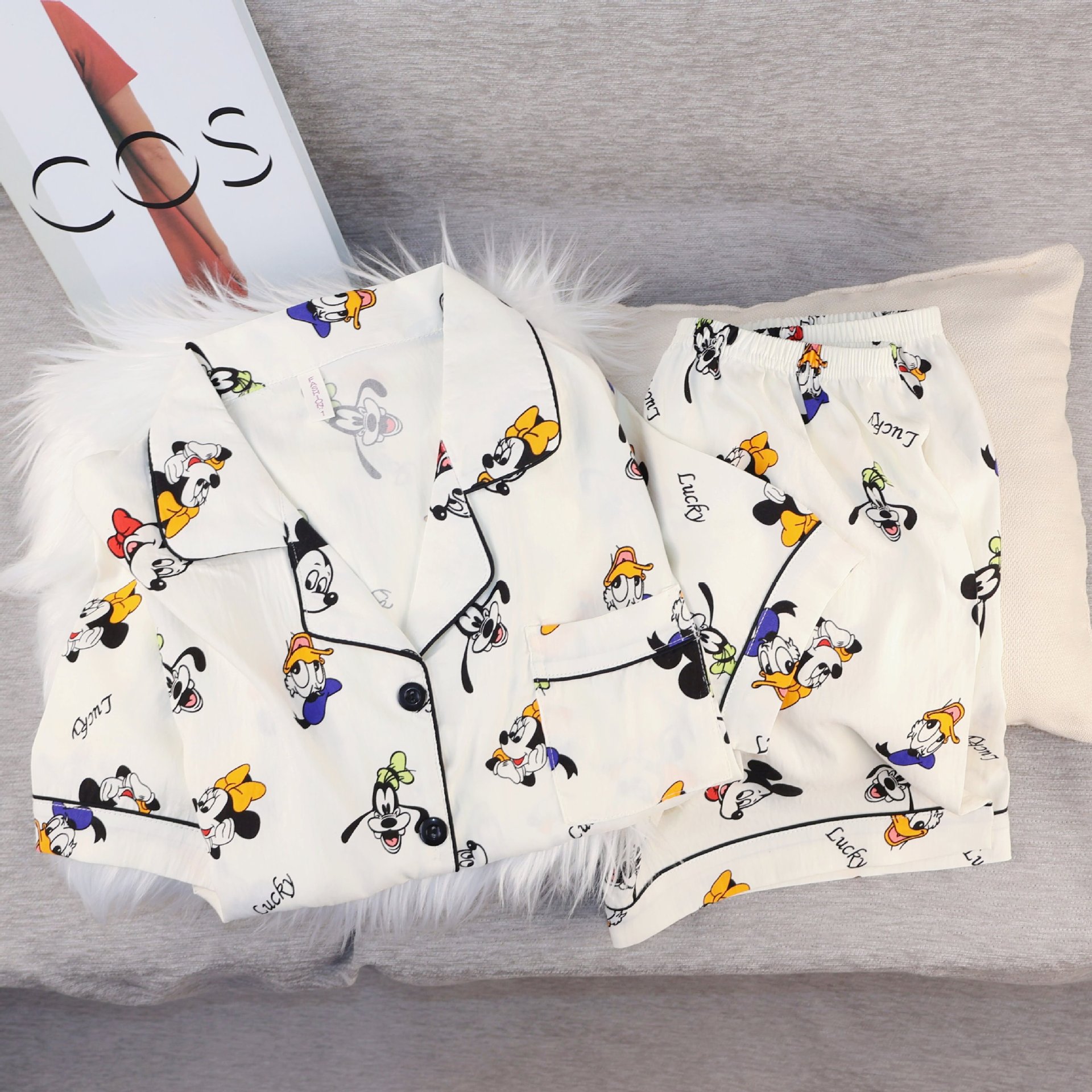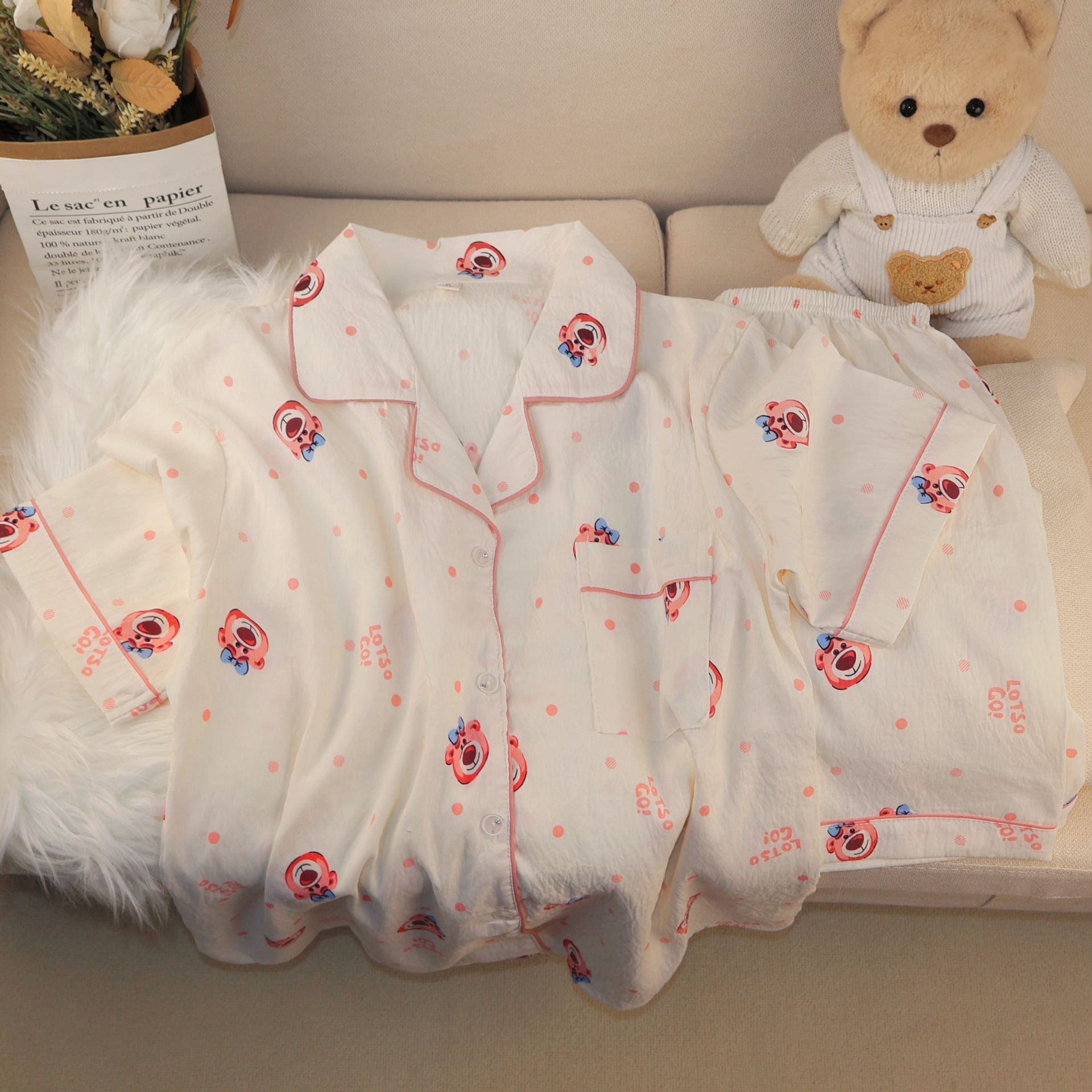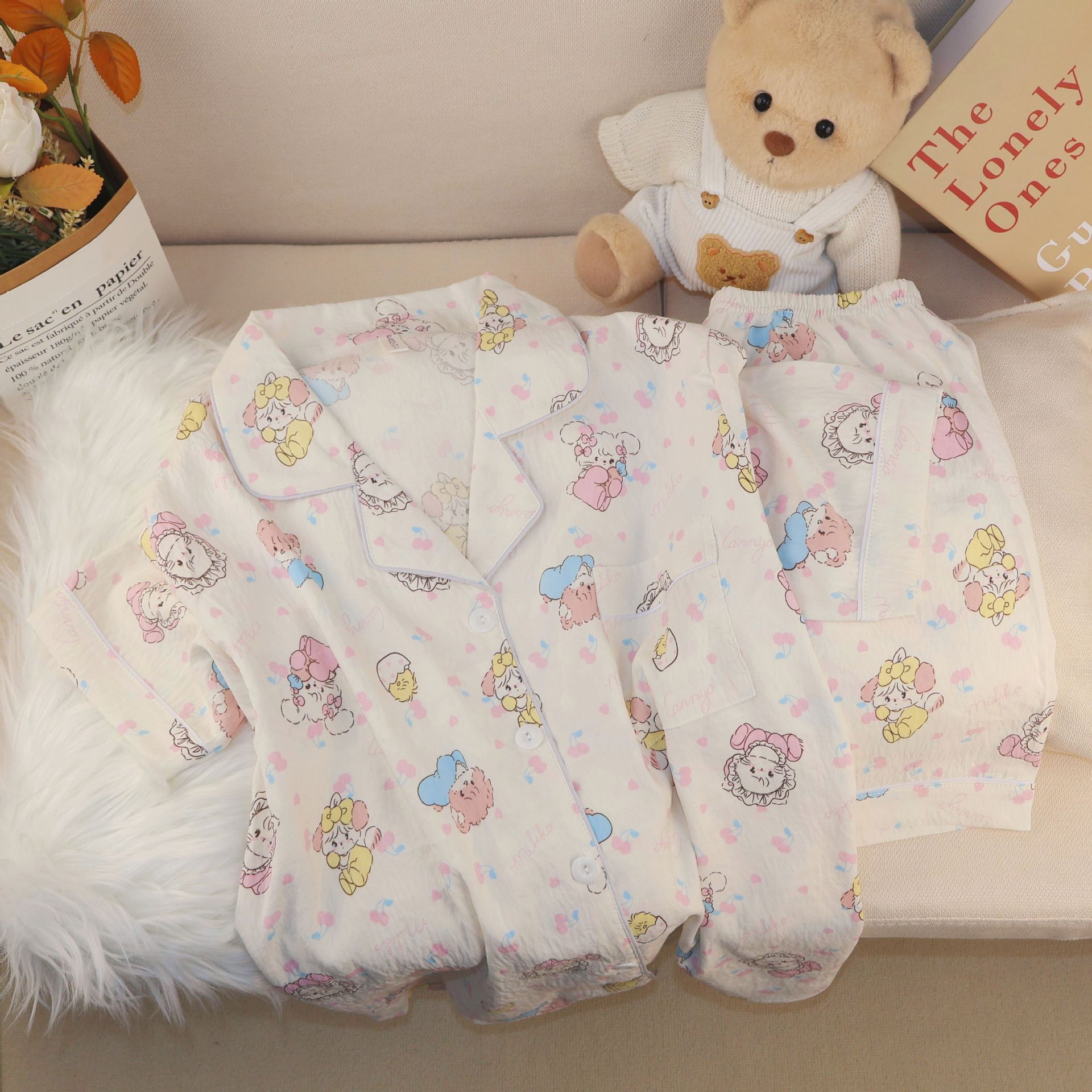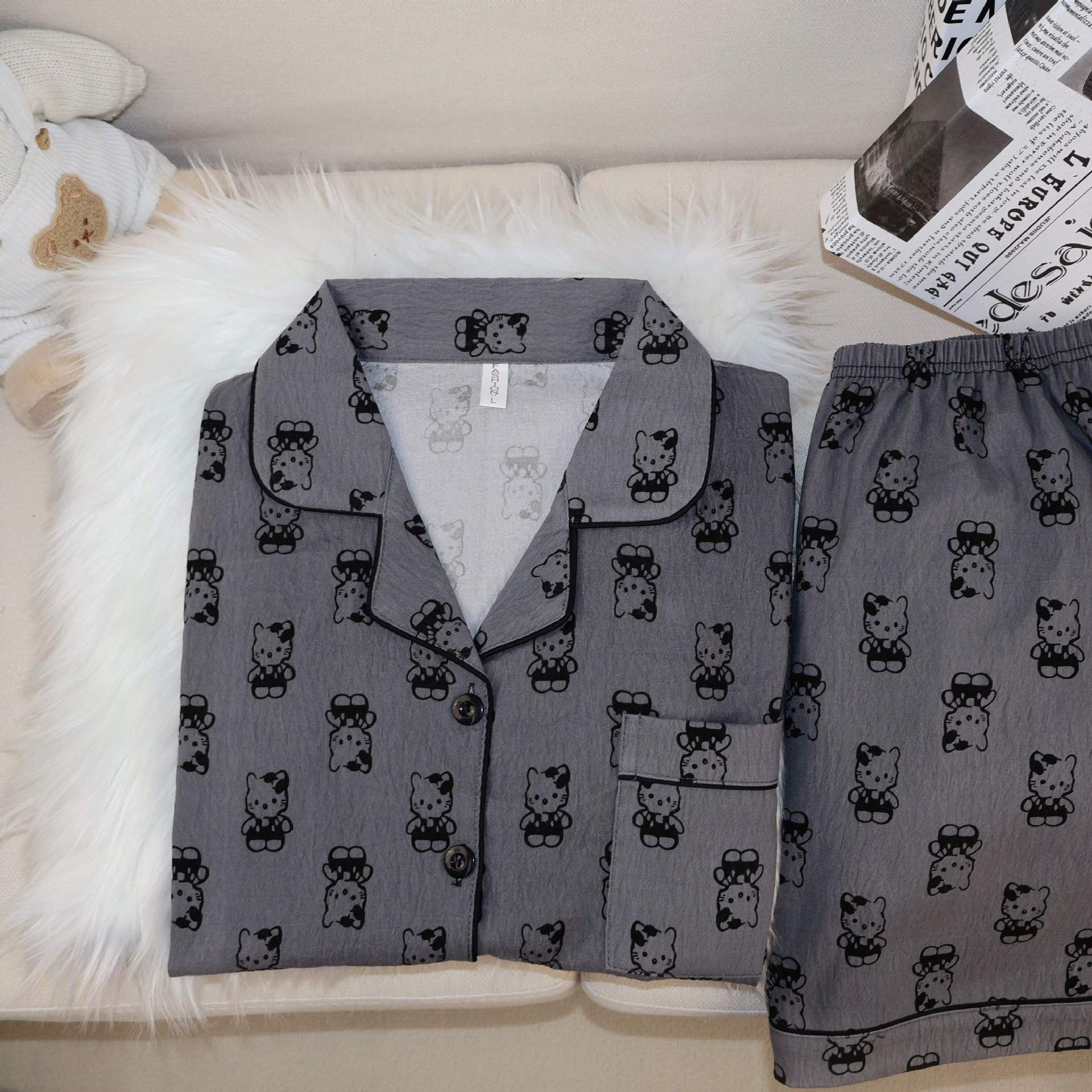 Piyama Model Baru Wanita Musim Panas Kapas Awan Ganda Pendek Gadis Kecil Lucu Kerah Lengan Pendek Celana Pendek Pakaian Rumah Set Grosir