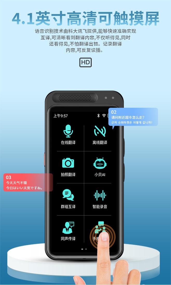 Penerjemah suara cerdas AI versi 4G dengan offline presisi mendukung 150 bahasa, kantor bahasa Inggris, dan penerjemah perjalanan