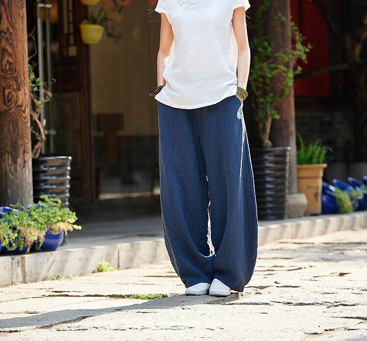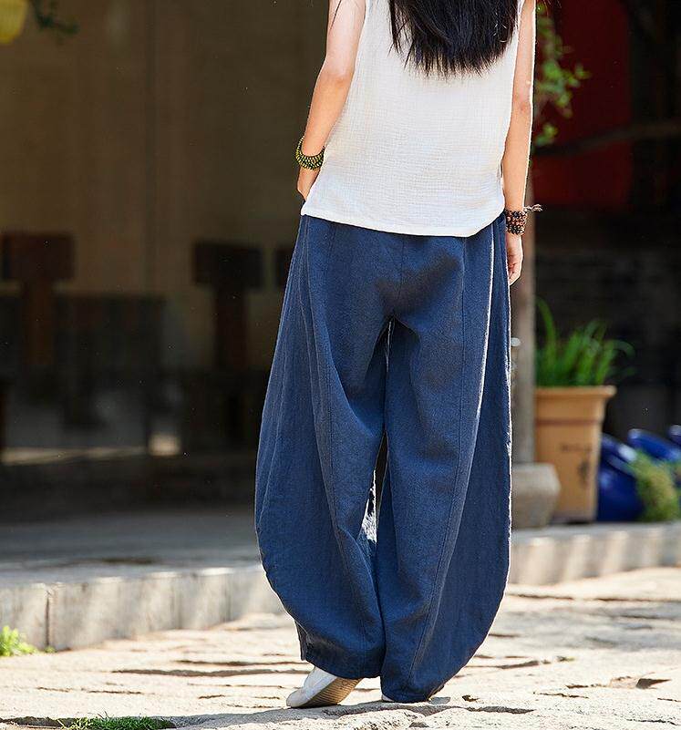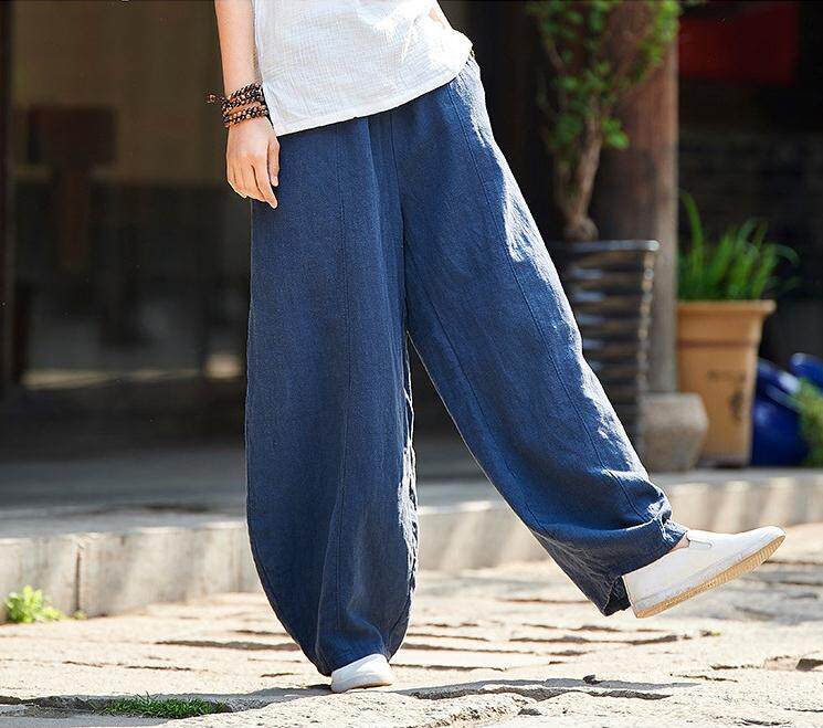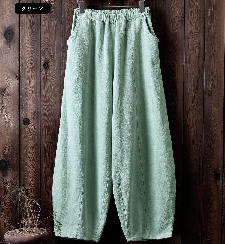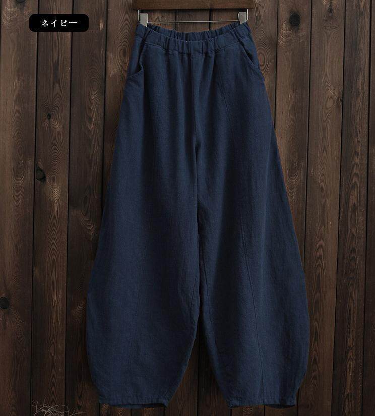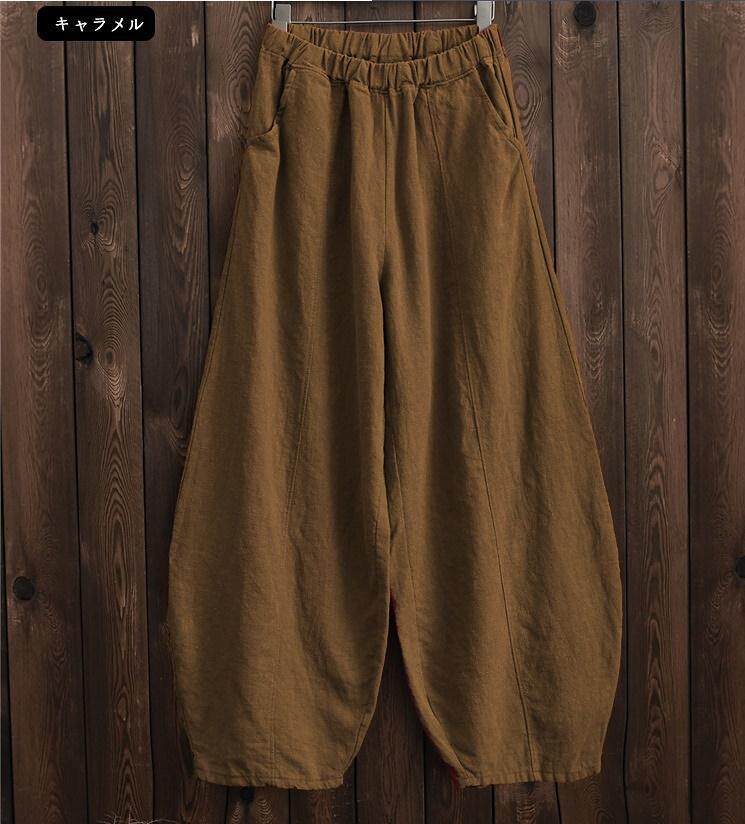 Celana panjang kasual wanita, celana panjang longgar ukuran plus pinggang elastis meditasi bloomers katun dan linen baru musim gugur 2023 gaya jepang enam warna