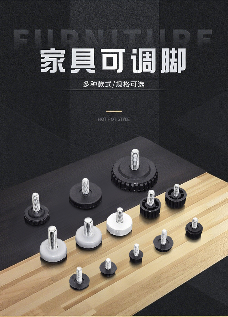 Produsen lintas batas menjual grosir bantalan kaki furnitur anti-selip yang tahan beban dengan alas sekrup untuk meja dan kursi, bantalan kaki yang dapat disesuaikan ketinggiannya.