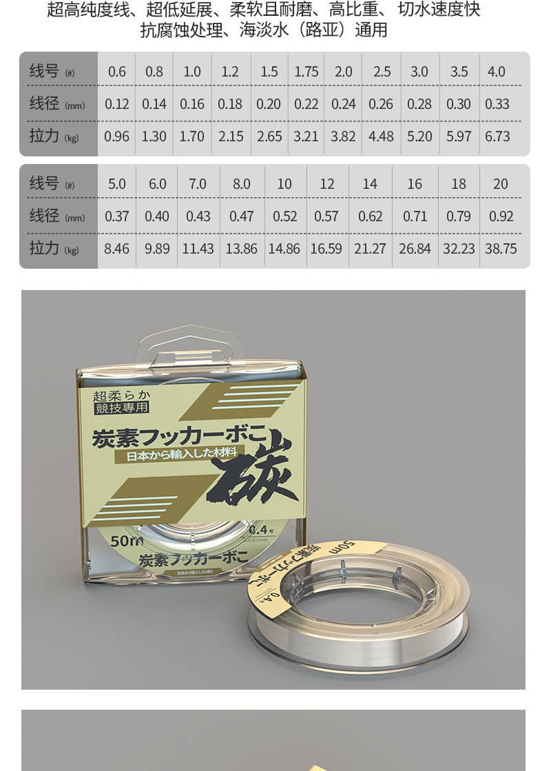 Senar pancing karbon asli, barang asli senar karbon, senar Luya, kawat depan khusus, tegangan super kuat, senar utama pancing akhir senar grosir
