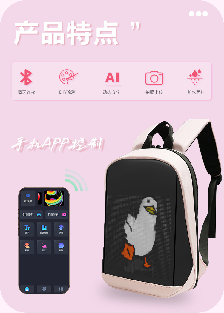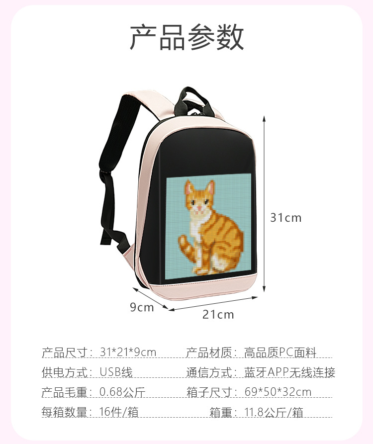 Ransel iklan LED lintas batas dengan layar tampilan LED untuk perjalanan luar ruangan, ransel layar warna LED