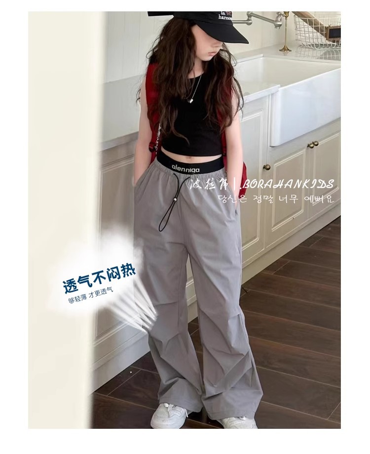 Celana Olahraga Anak Perempuan Celana Kerja Cepat Kering Anak-anak Model Tipis Musim Panas Celana Anti Nyamuk Lurus Anak Sedang Besar Gaya Barat Versi Sempit Trendi