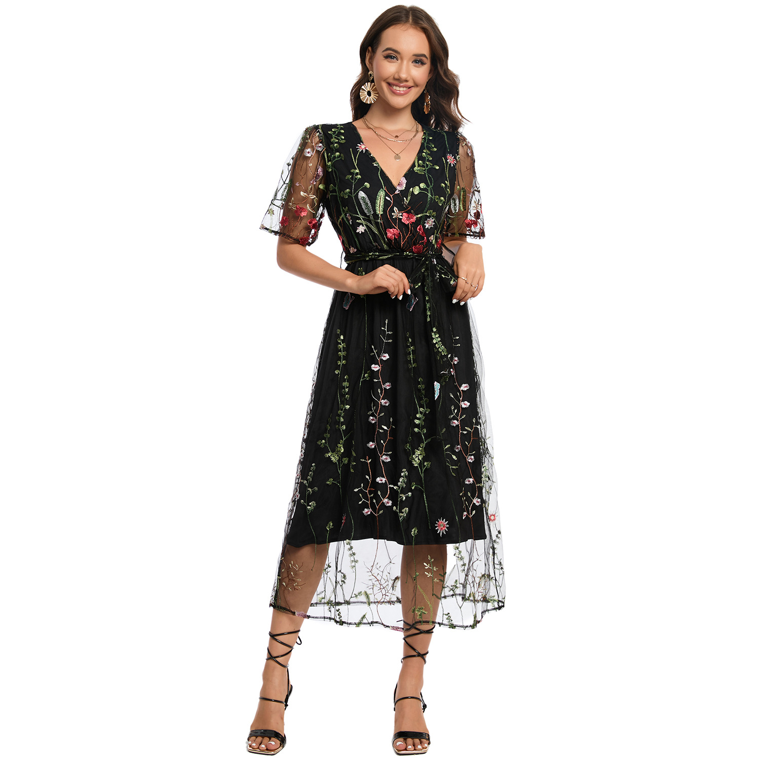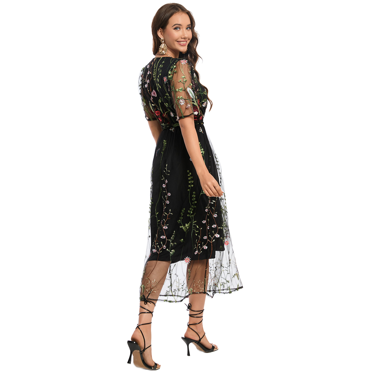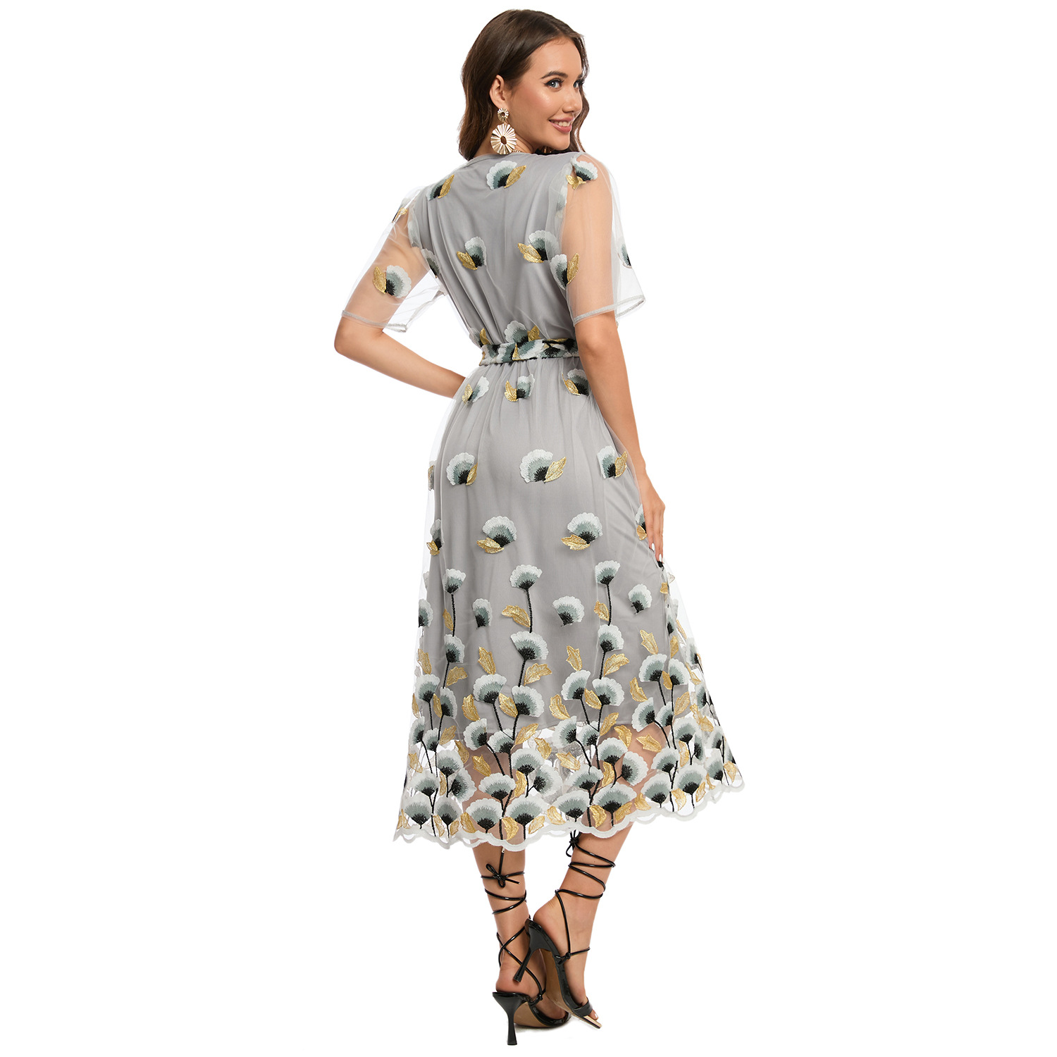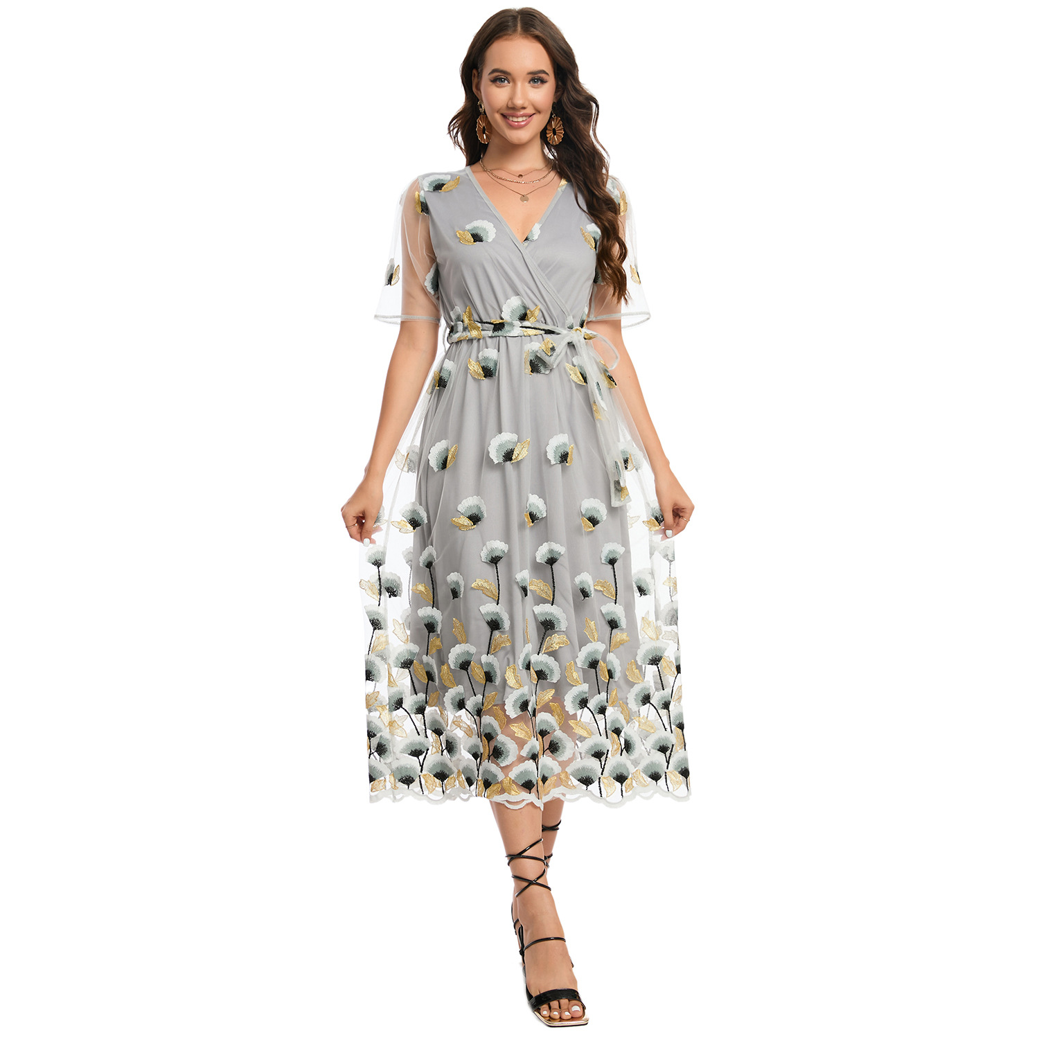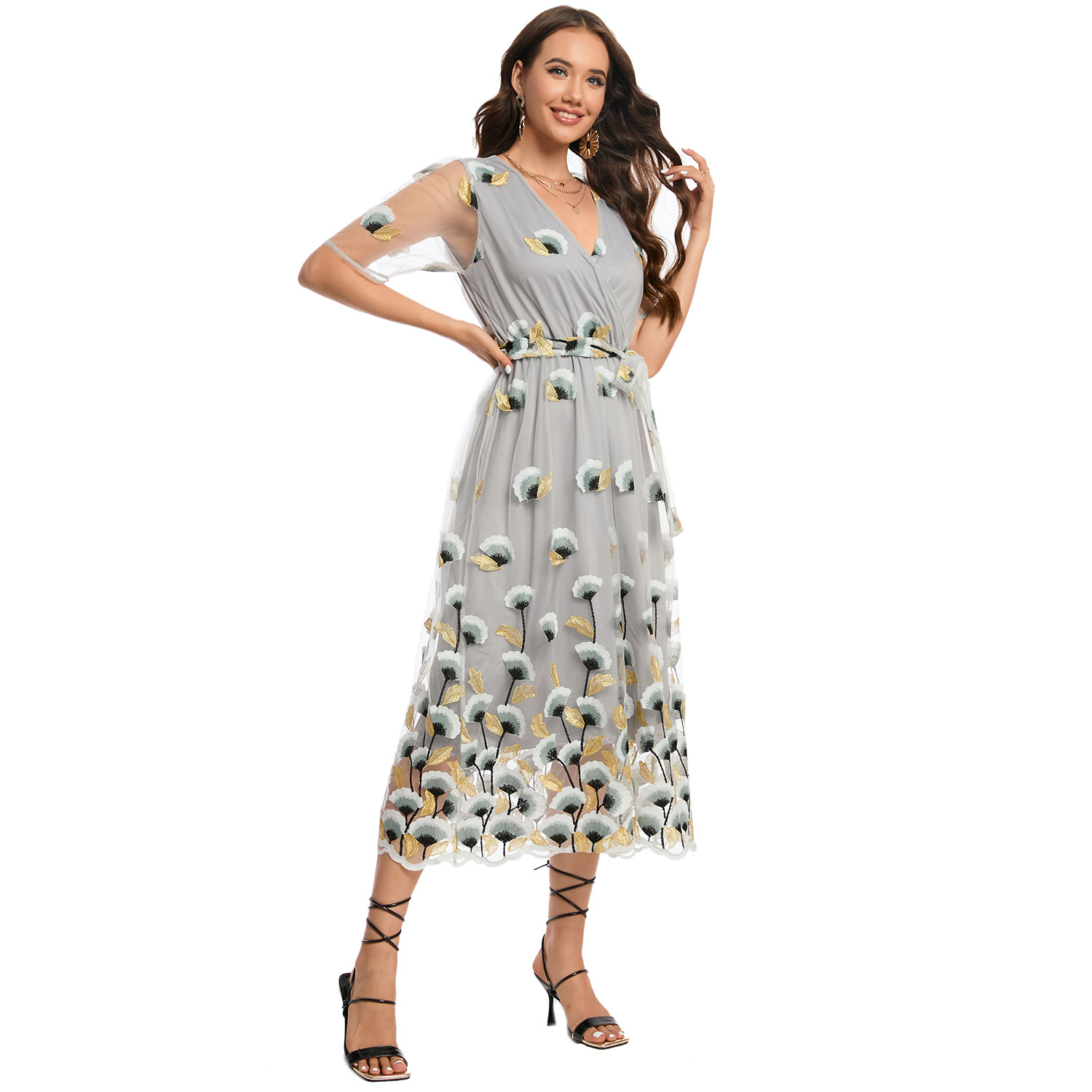 这款迷人的双层花卉连衣裙套装推出黑&浅灰双色版本,满足不同场合需求: