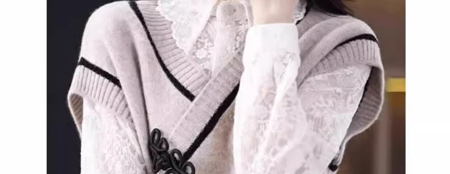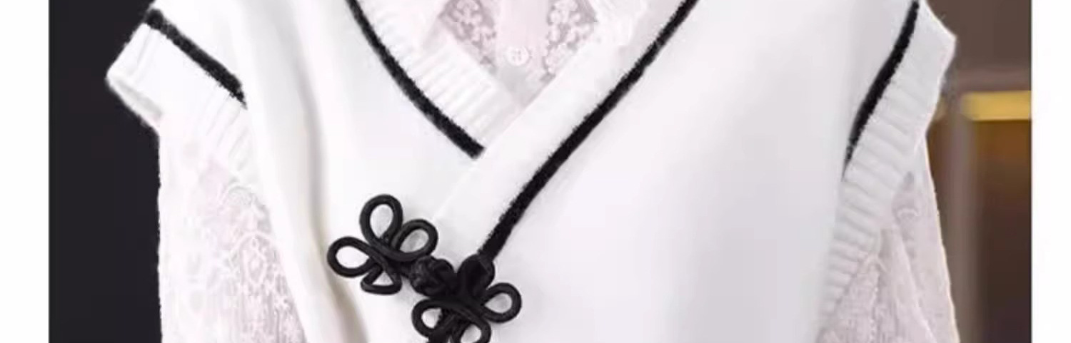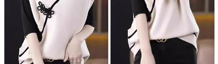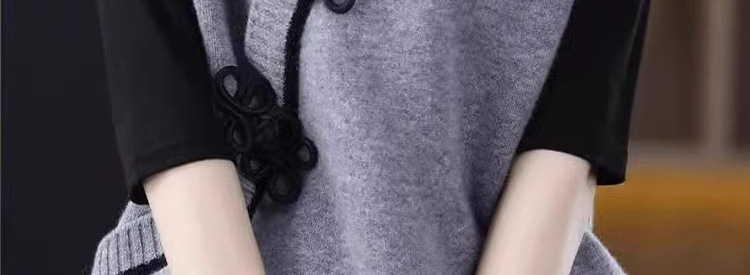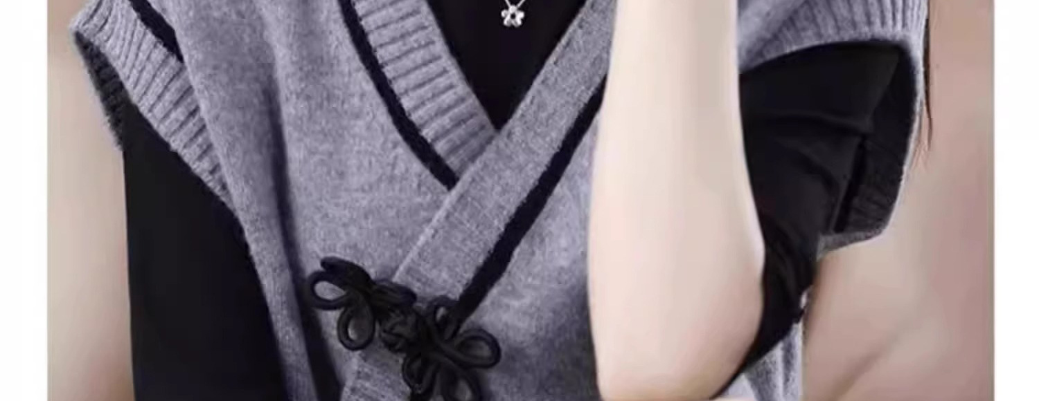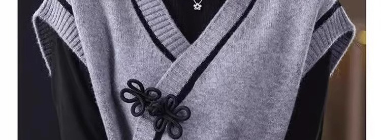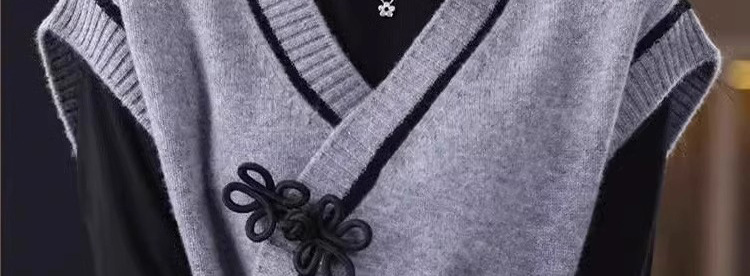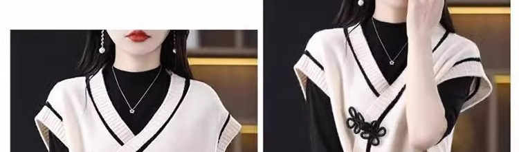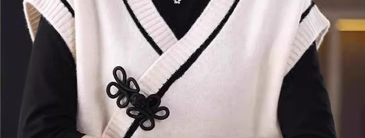 Gaya baru awal musim gugur, rompi tanpa lengan bergaya retro Cina baru dengan kancing, rompi rajutan bergaya dan unik dengan blok warna.