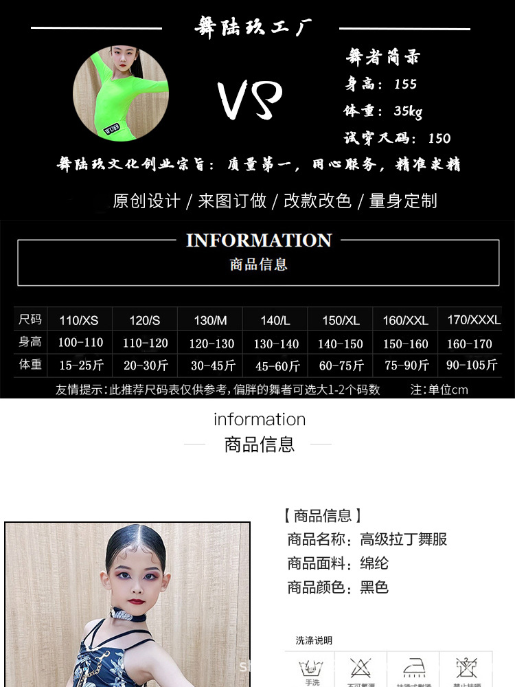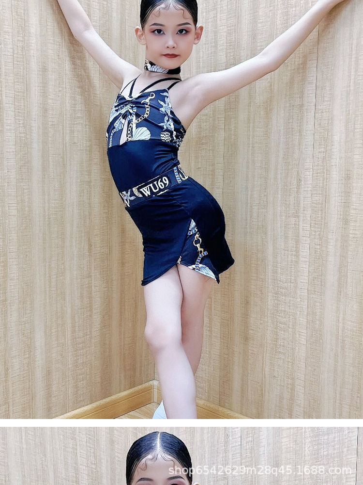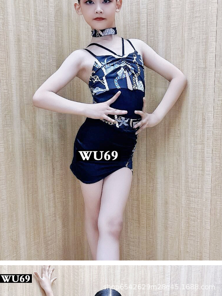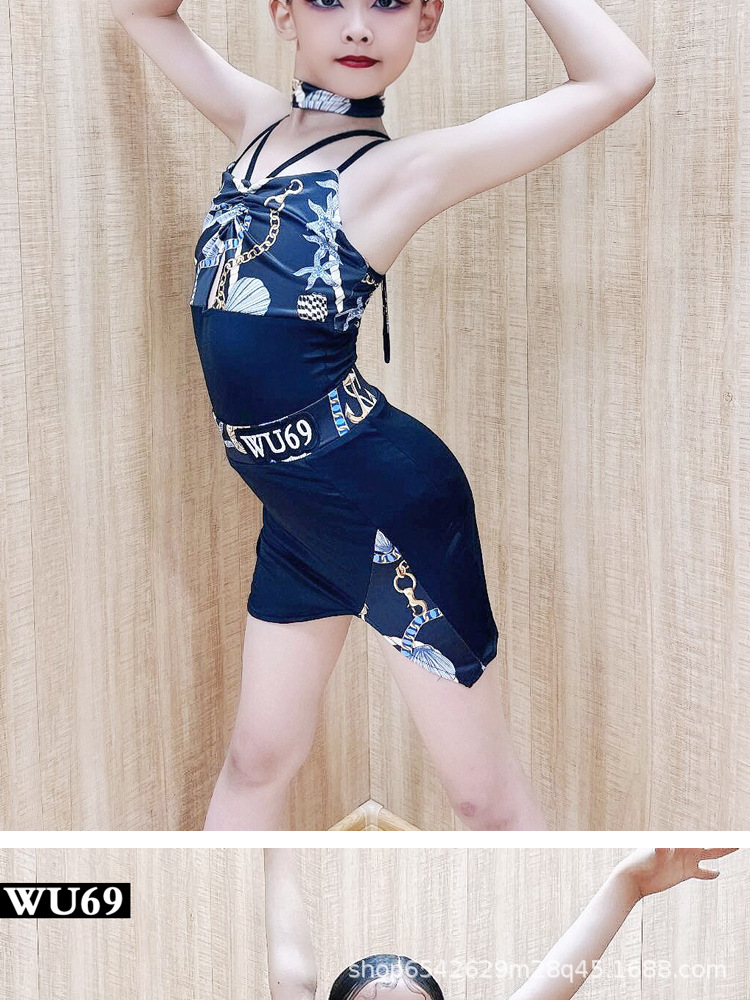 WU69 pakaian latihan dansa Latin anak perempuan, pakaian latihan dansa profesional, pakaian pertunjukan dansa Latin anak-anak, musim panas