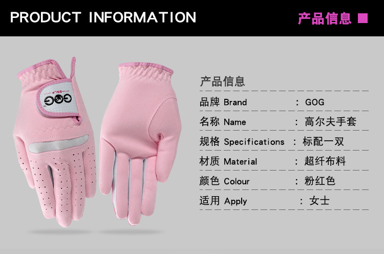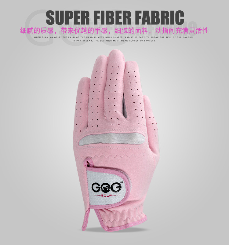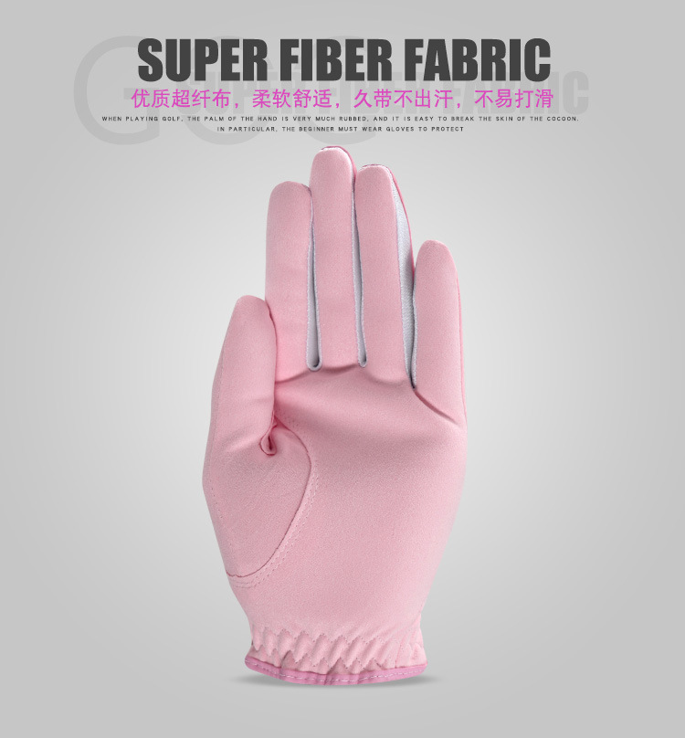 Sarung tangan golf profesional wanita, sarung tangan golf microfiber merah muda, kain halus pink, sarung tangan golf