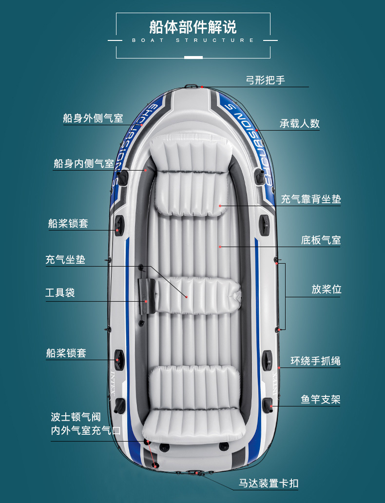 INTX perahu karet, perahu karet tiup dipertebal untuk memancing ekstra besar, serangan luar ruangan