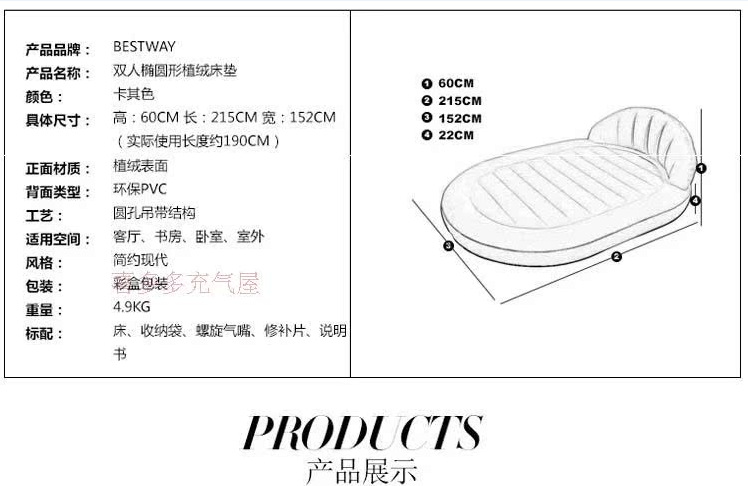 Kasur tiup luar ruangan portabel, seprai tempat tidur bantalan udara ganda tebal berkelompok berkemah rumah tangga