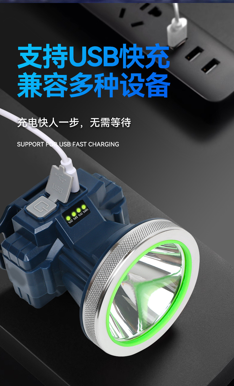 Grosir meriam laser cahaya kuat LED super terang baterai lithium isi ulang lampu depan memancing malam induksi tahan lama yang dipasang di kepala luar ruangan