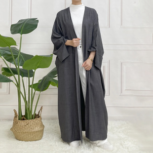 2025跨境穆斯林双色平纹长袖连衣裙休闲长袍